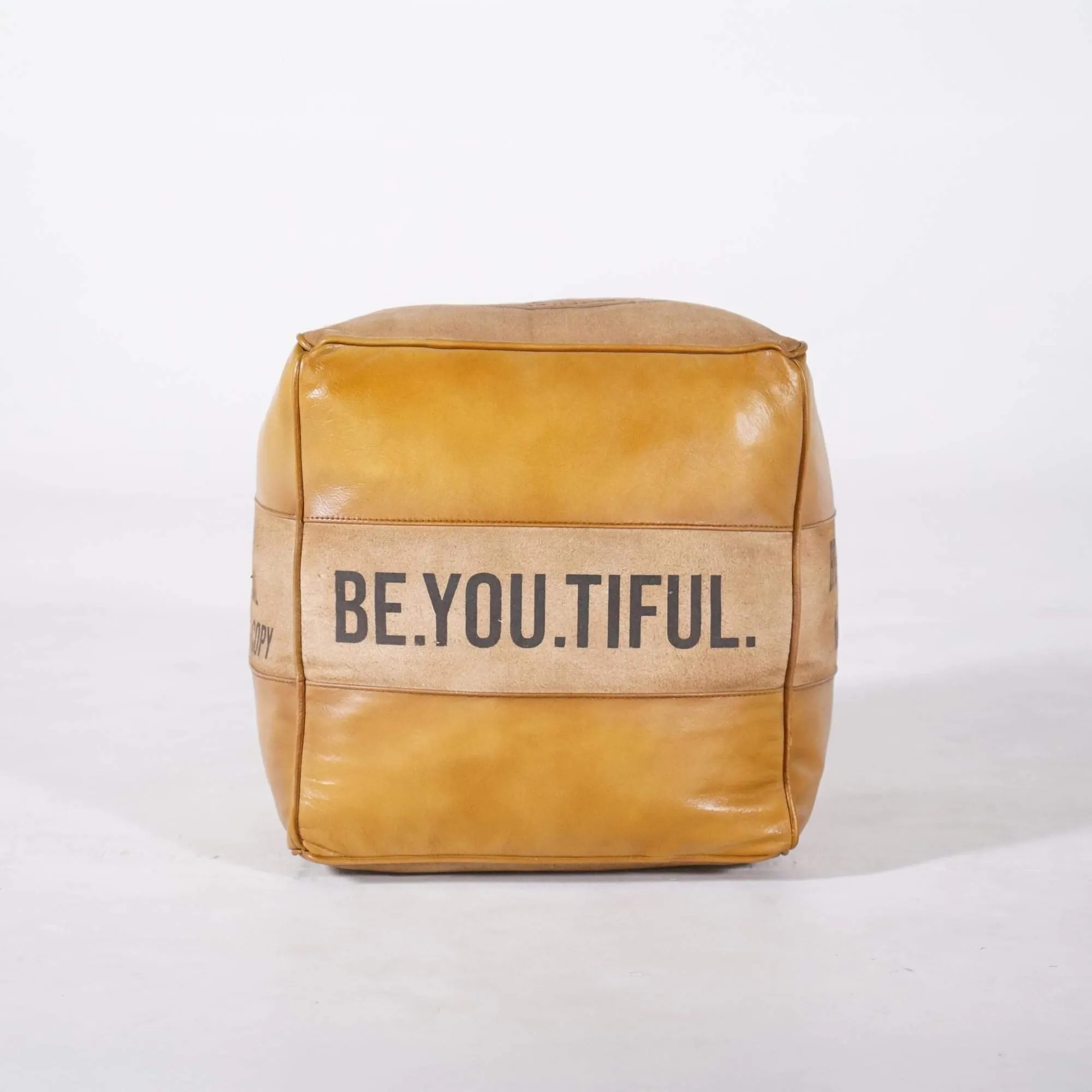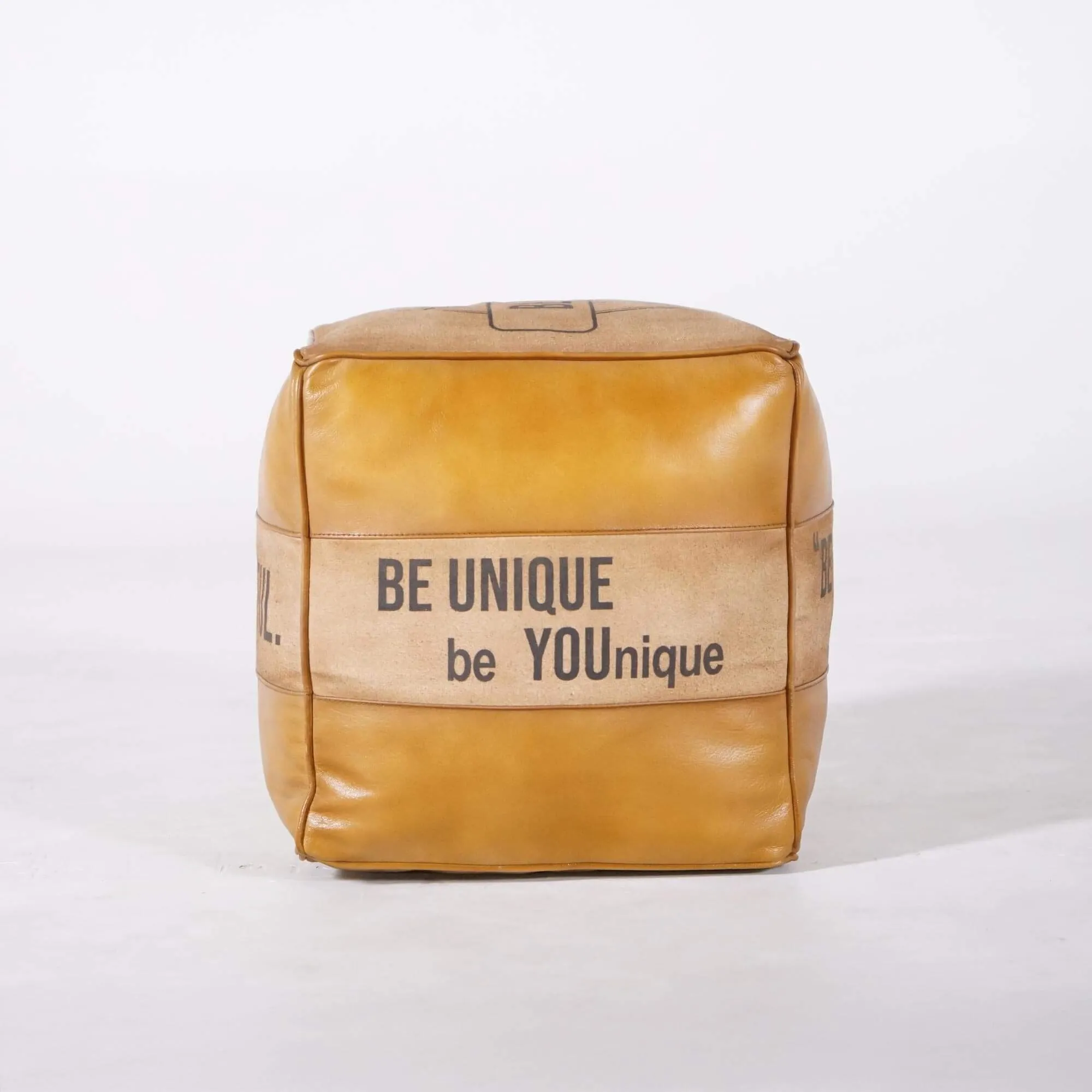 Industriële poef in leer "Be Yourself"