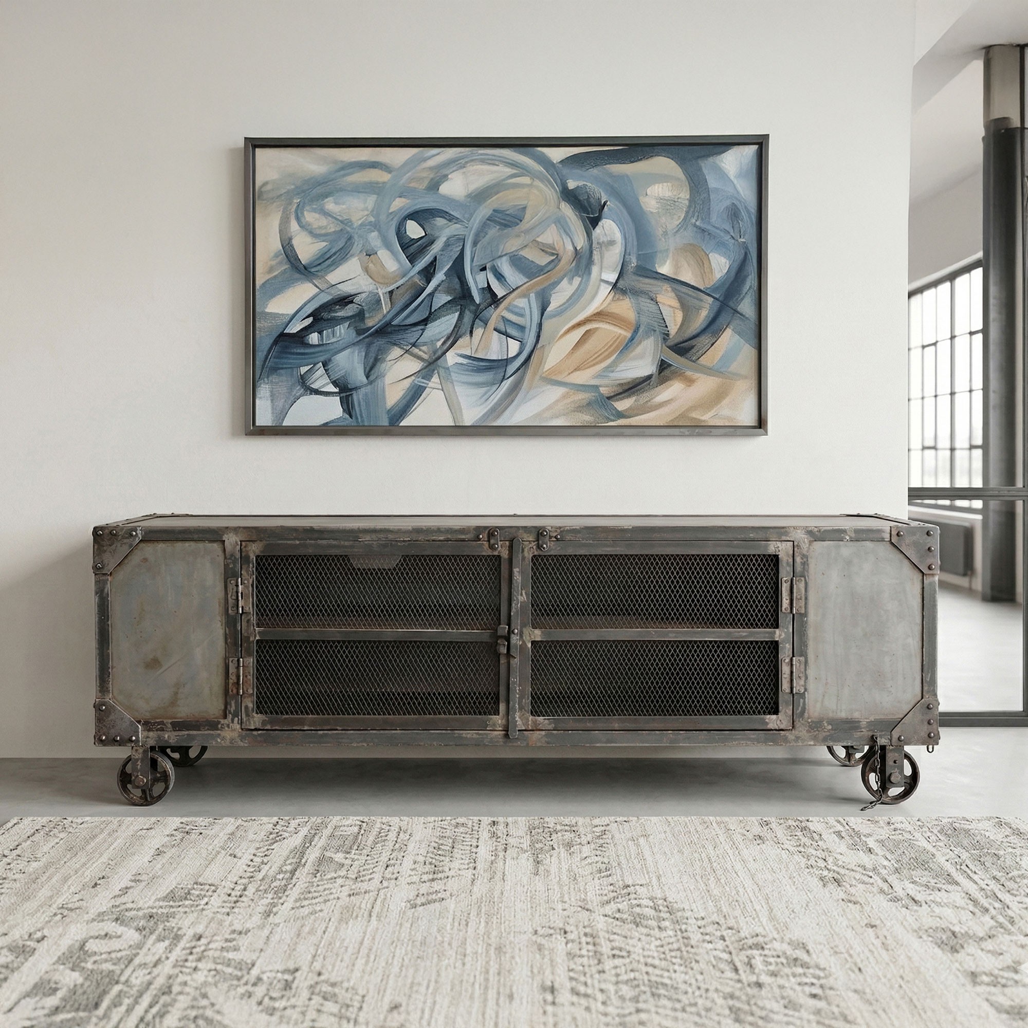 Dit volledig metalen industriële TV-meubel combineert de kunst van metaalbewerking met hedendaags design. Dit tijdloze en functionele meubel zal je woonkamer opluisteren met charisma en persoonlijkheid en een onmiskenbaar industrieel tintje geven aan je inrichting.