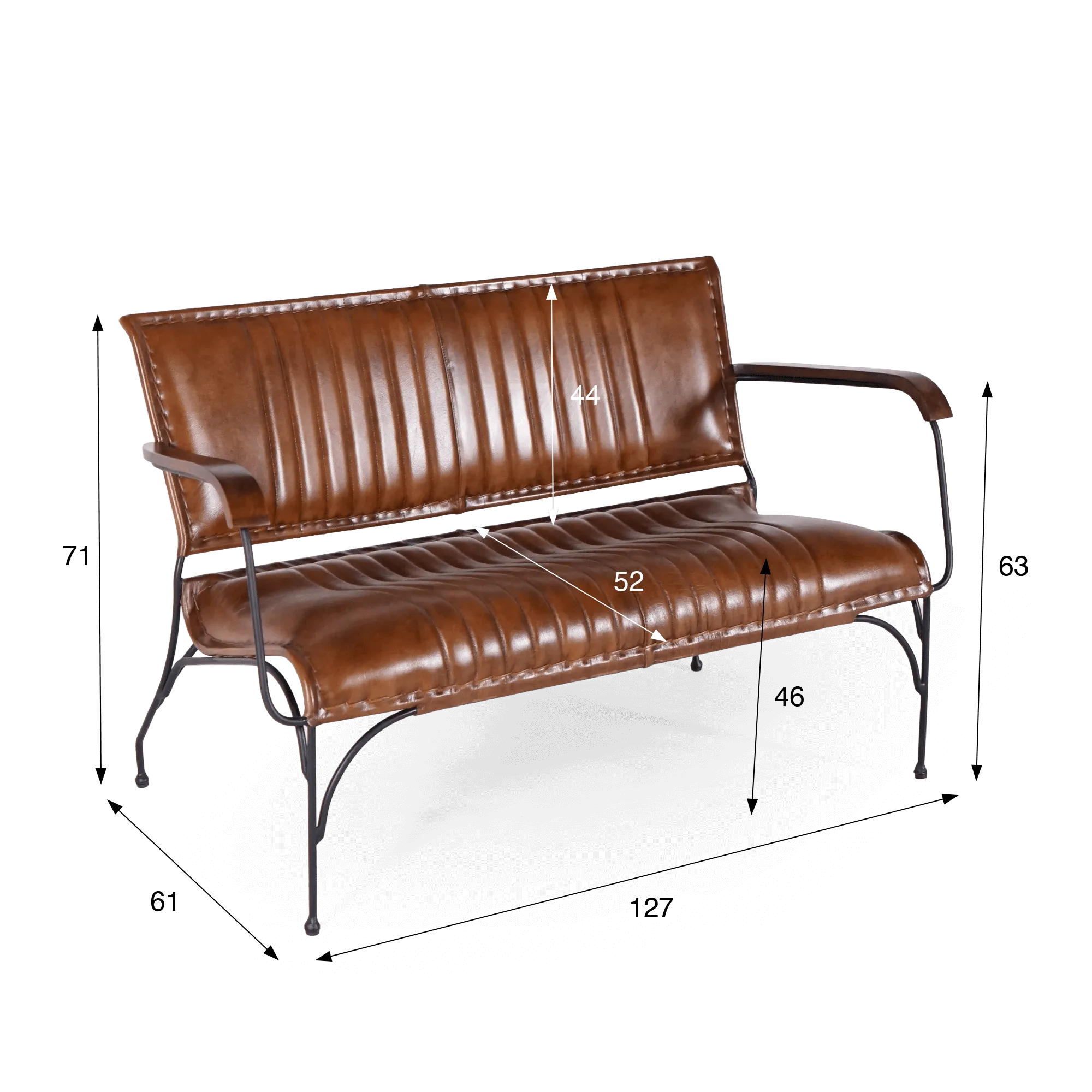 De armleuningen in metaal zijn afgewerkt met gebeitst hout. De kleur en textuur van het hout doorbreken de strakke uitstraling van het metaal. De hellingshoek van de zitting en de hoogte van de poten van de vintage leren Cosy 3-zits zijn doordacht ontworpen om maximaal zitcomfort te garanderen. De positie van rug en knieën is ideaal en nodigt uit om urenlang heerlijk te ontspannen voor de tv, bij een knisperend haardvuur of met een boeiend boek. De metalen poten zijn fijn vormgegeven en geven de fauteuil tegelijk een lichte én robuuste uitstraling. De vintage leren Cosy 3-zits heeft veel karakter en wordt al snel het blikvangerstuk in uw interieur.