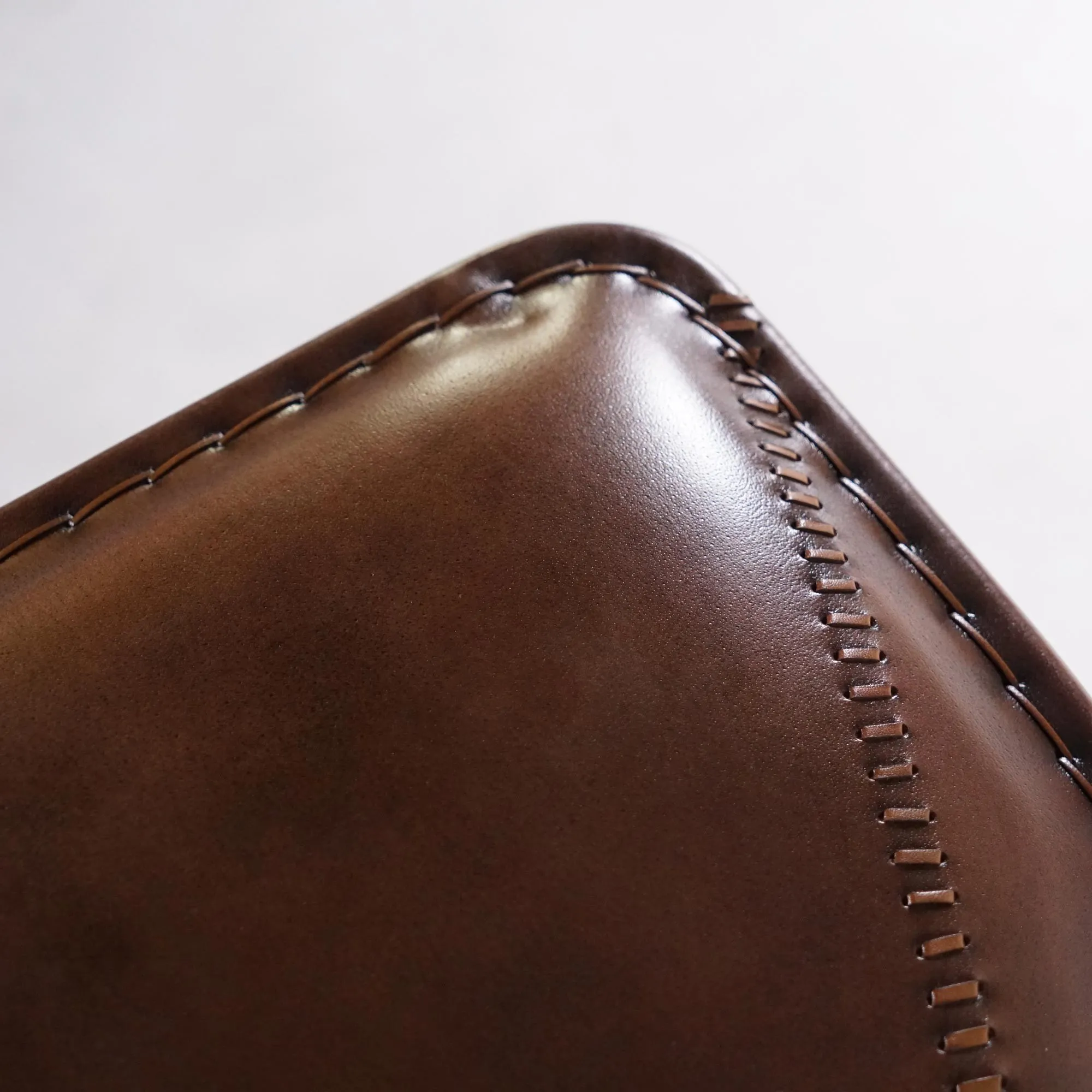 De zitting en rugleuning zijn gemaakt van hoogwaardig bruin leder. De houding van de rugleuning en de stoffering zijn zorgvuldig ontworpen om het perfecte zitcomfort te bieden voor een etentje of lange werkuren.