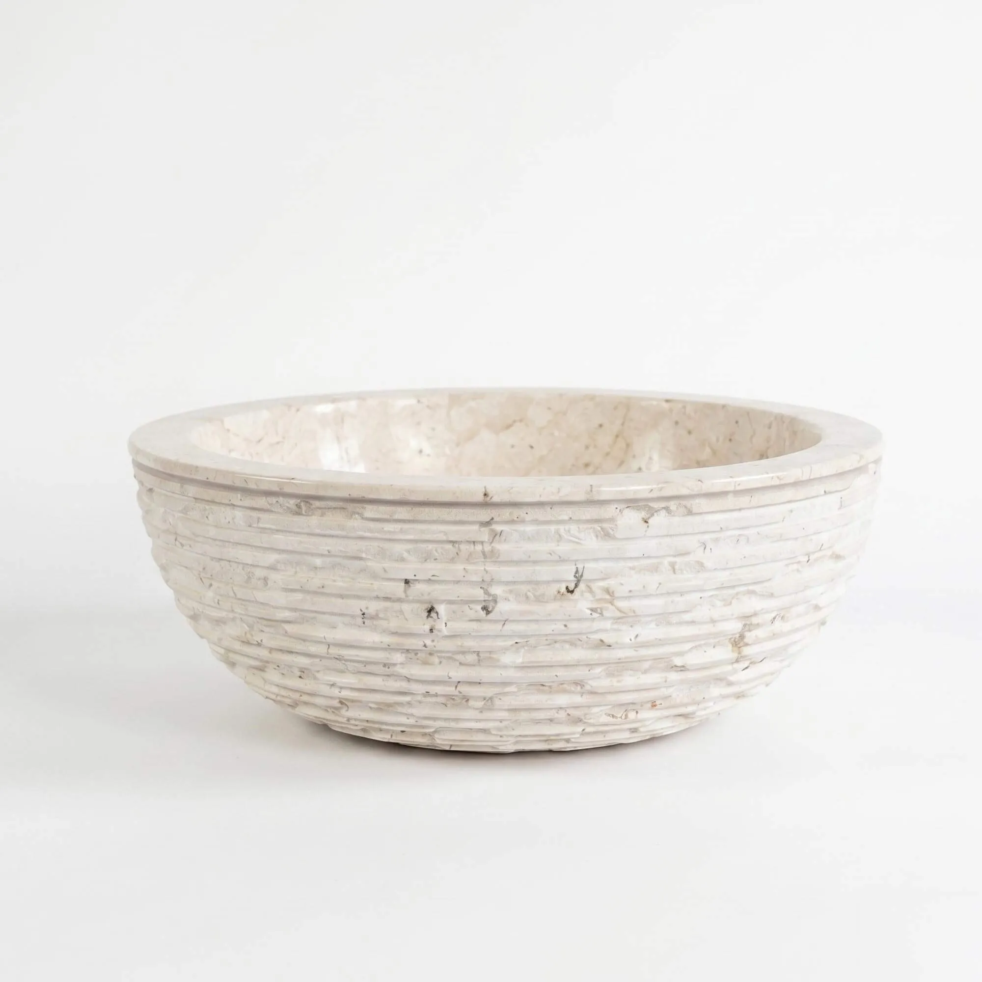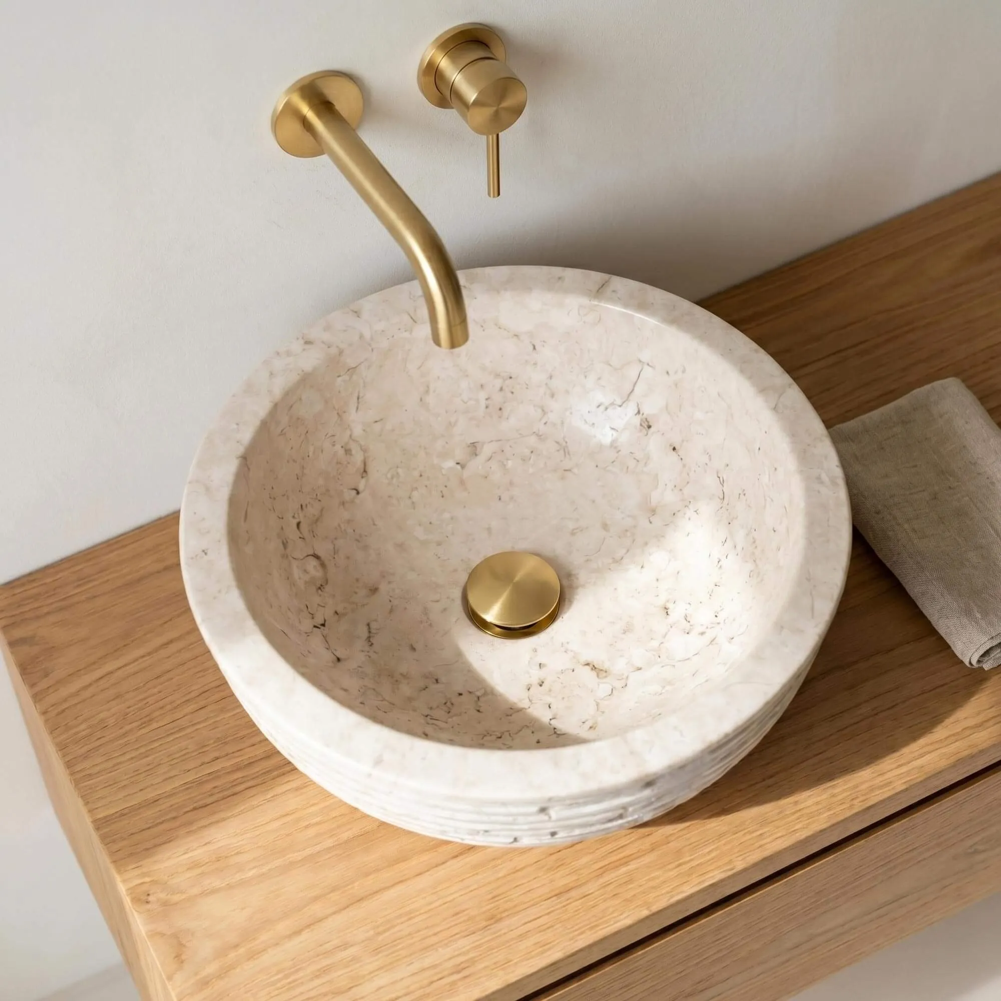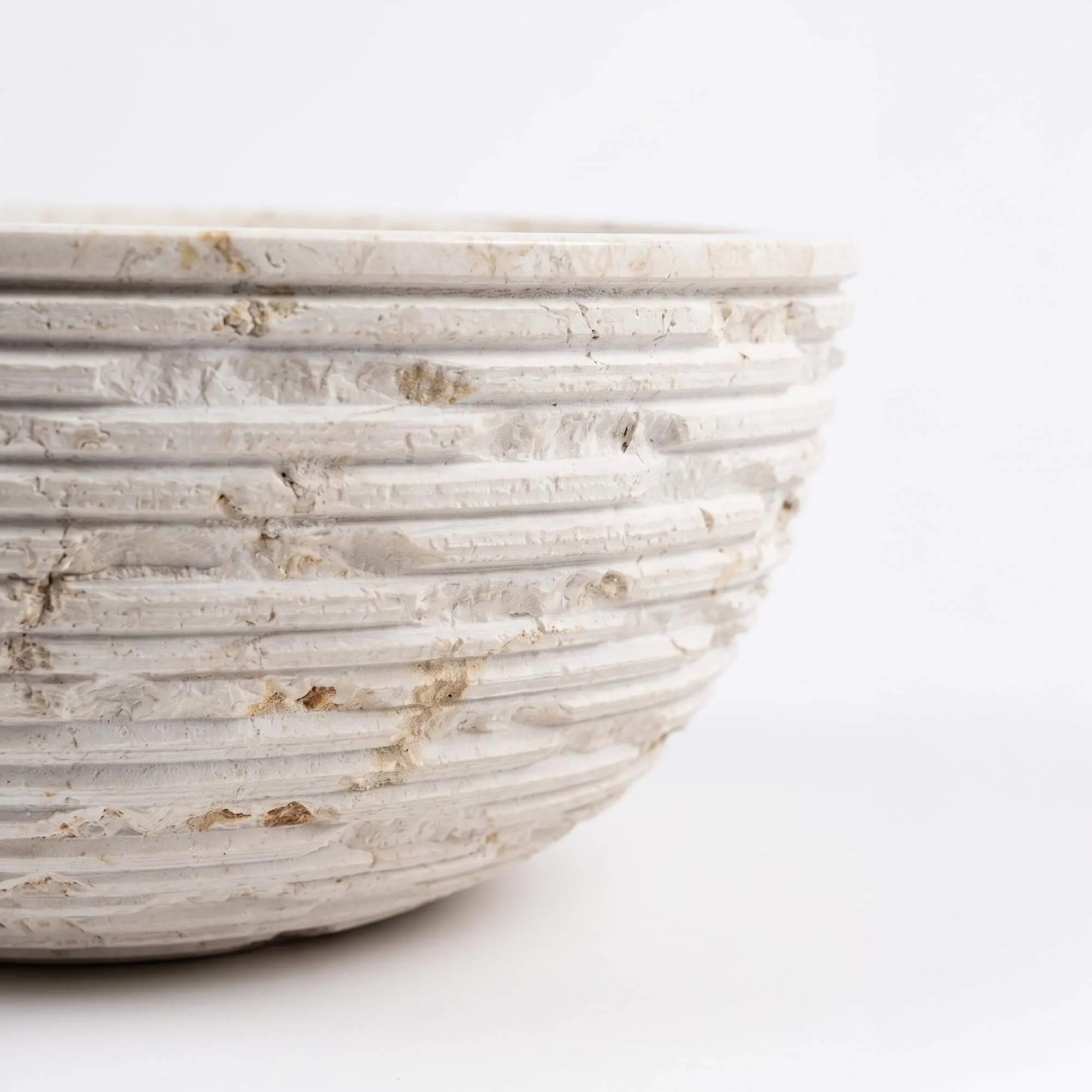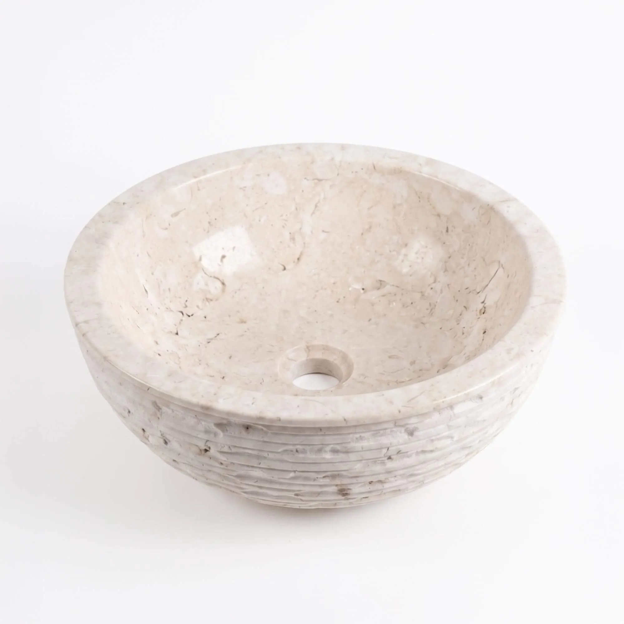 Ontdek Baskom, een handgesneden wastafel van wit marmer.