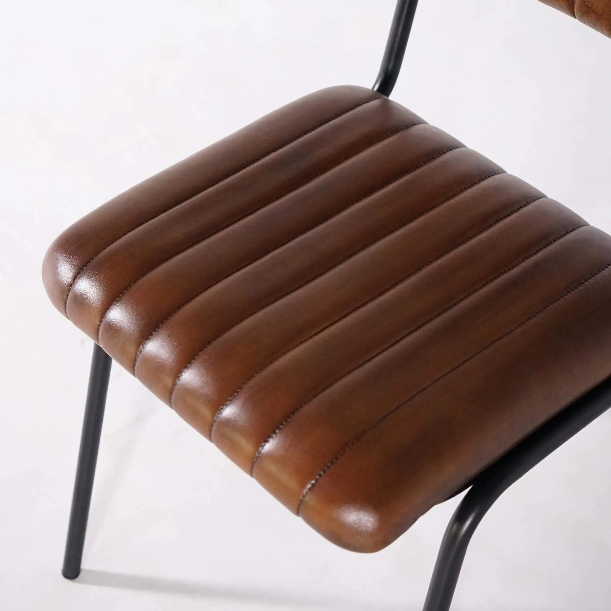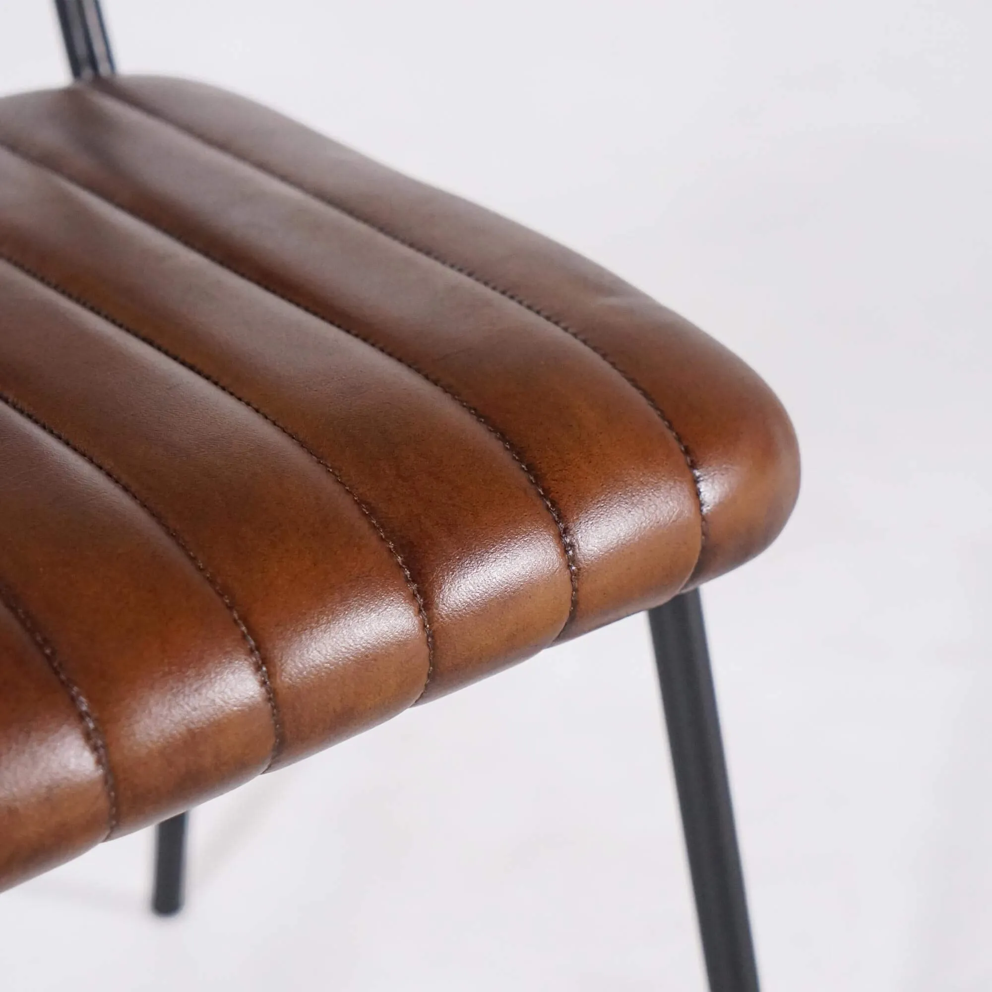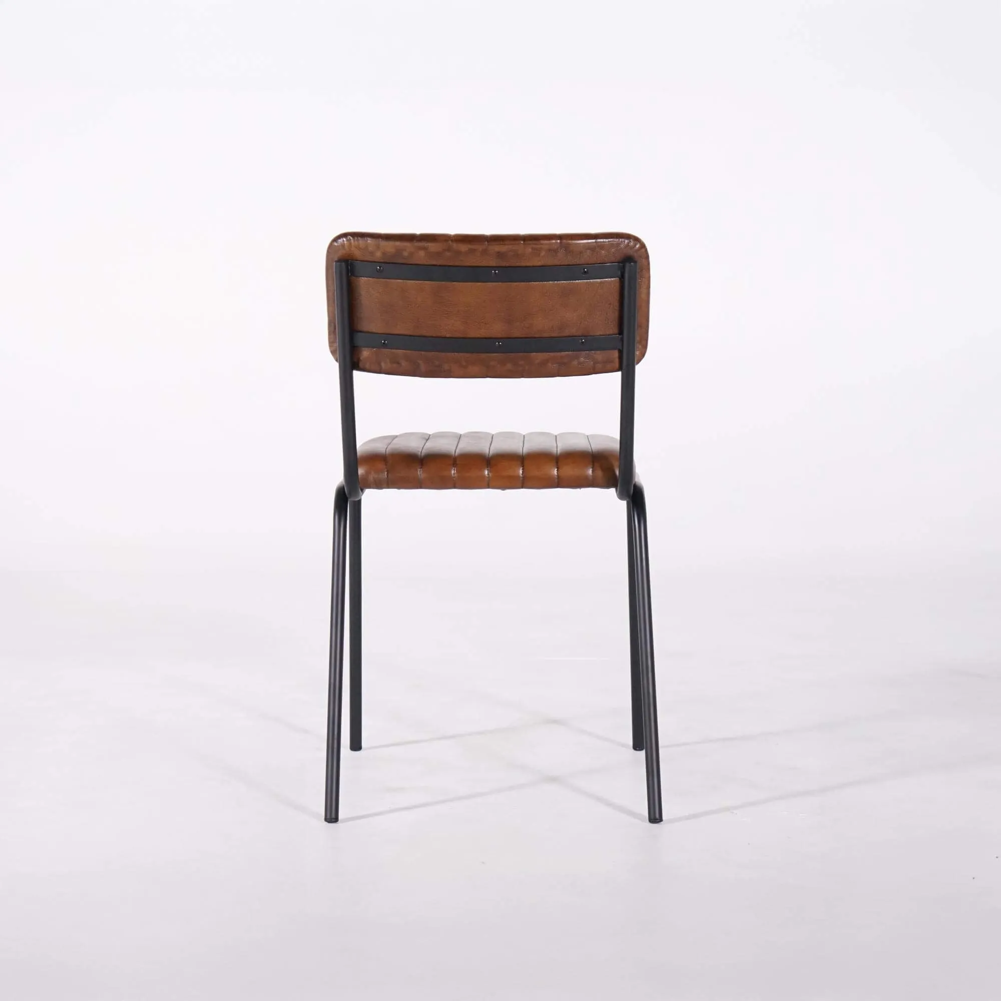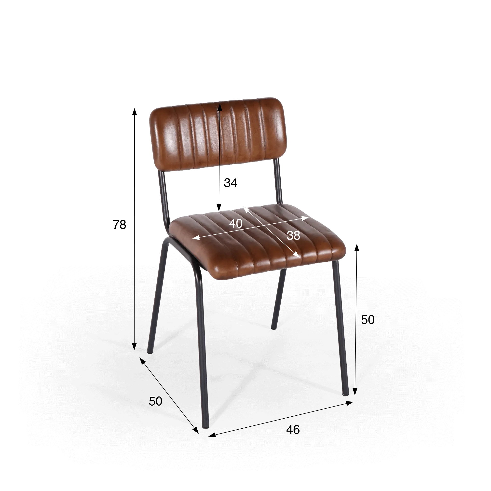 De metalen en natuurlijke leren stoel Prati combineert vakkundig de zachtheid van echt buffelleer met de robuustheid van de zwarte metalen poten, en creëert zo een perfect visueel evenwicht tussen luxe en moderniteit. Het prettige gevoel van het leer gaat samen met tijdloze elegantie, terwijl de metalen poten het geheel duurzaam stevig en stabiel maken.