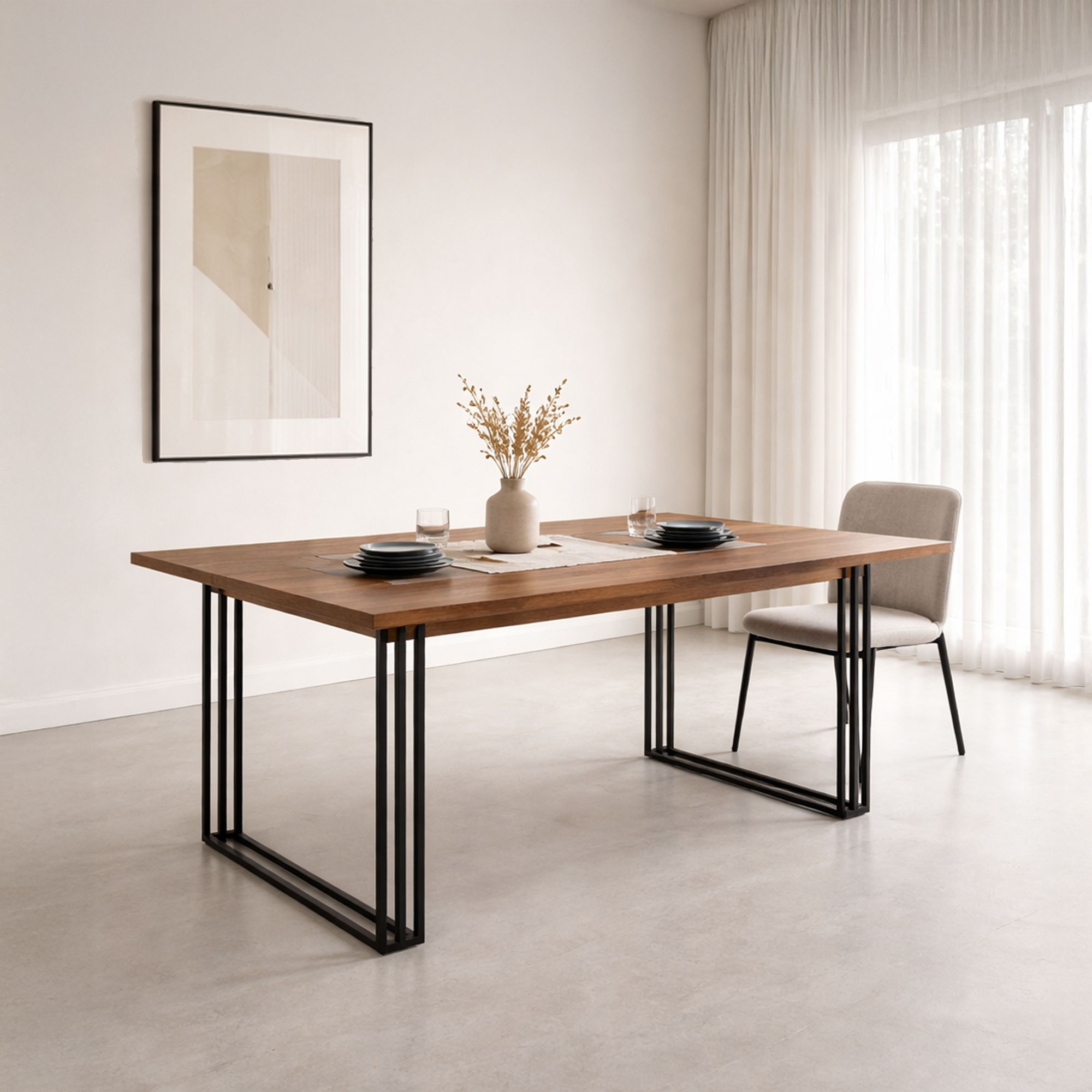 De Queens massief houten tafel belichaamt de perfecte harmonie tussen de warmte van hout en de stevigheid van metaal, met een strak ontwerp dat perfect past bij je hedendaagse interieur. Met zijn royale afmetingen van 90x170 cm is hij ideaal voor maximaal 6 personen.