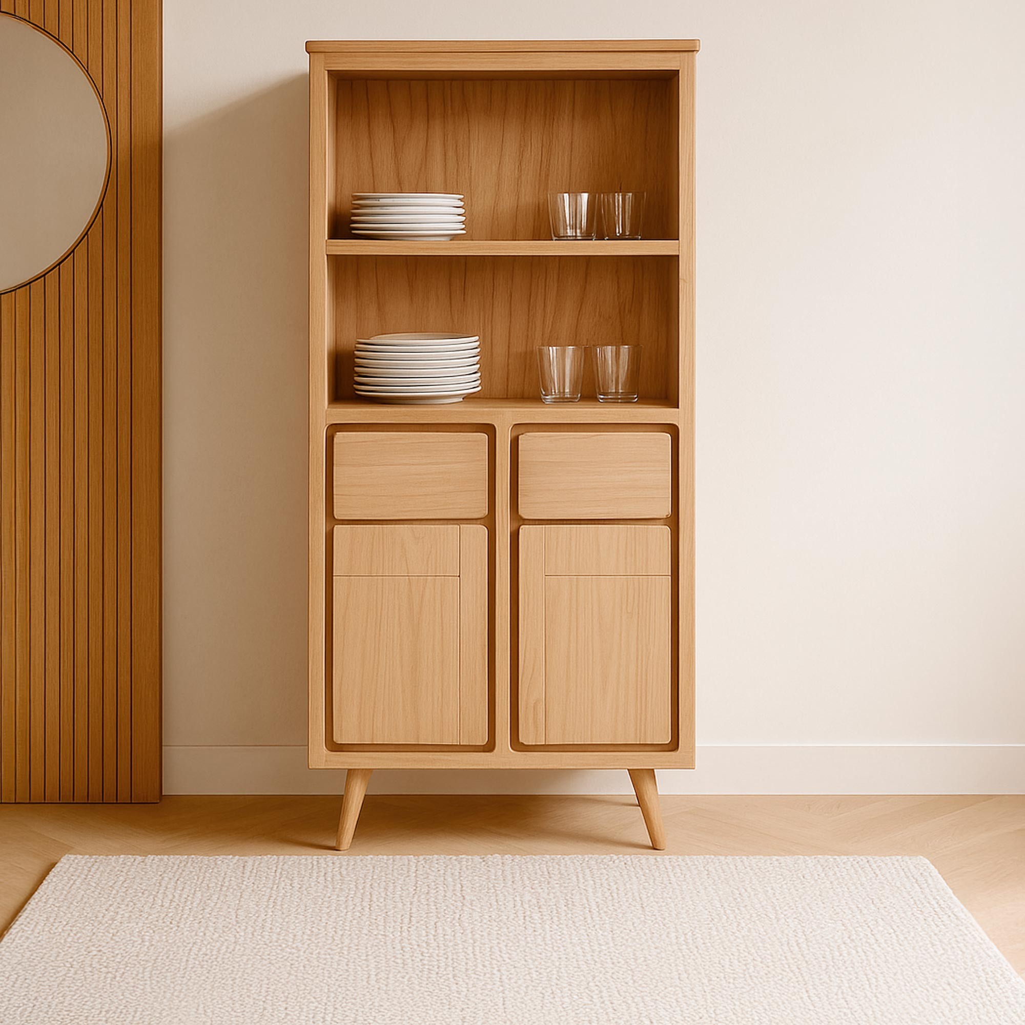 Pragati Hoge buffetkast in massief hout met 2 deuren 90cm – Pragati