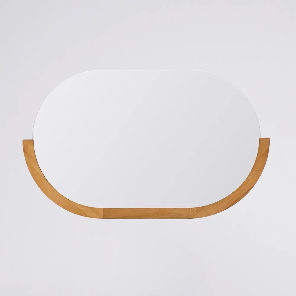 Keya Spiegel 90 cm met afgeronde hoeken en teakhouten lijst - Keya