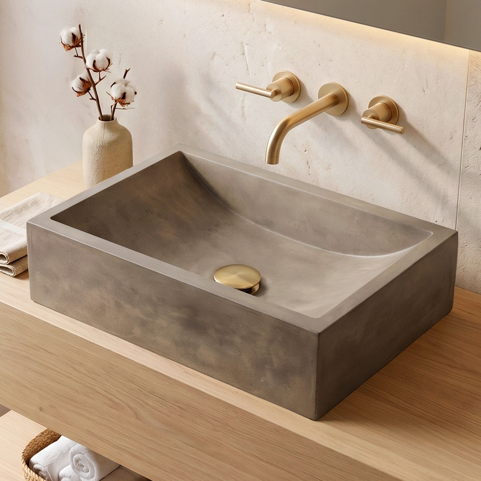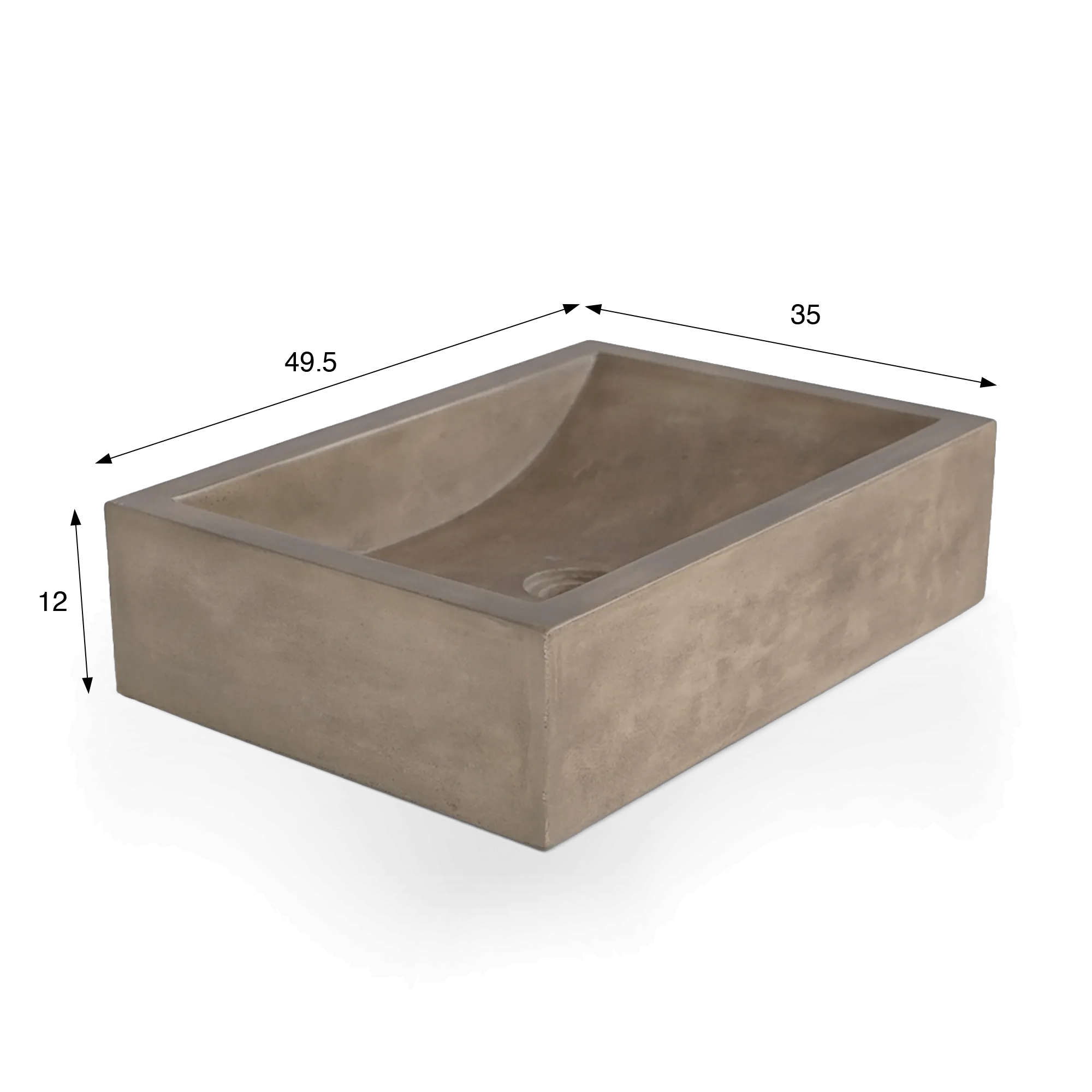Rechthoekig betonnen waskom - Natuurlijke kleur - Pure Cast