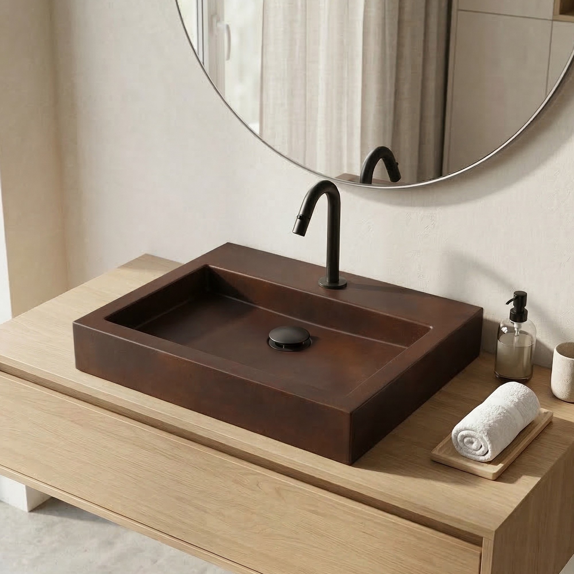 Rechthoekige vintage bruine betonnen wastafel - Solidis