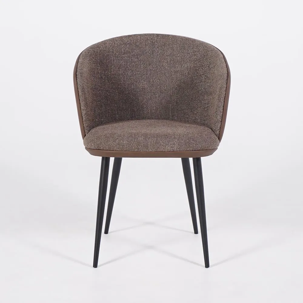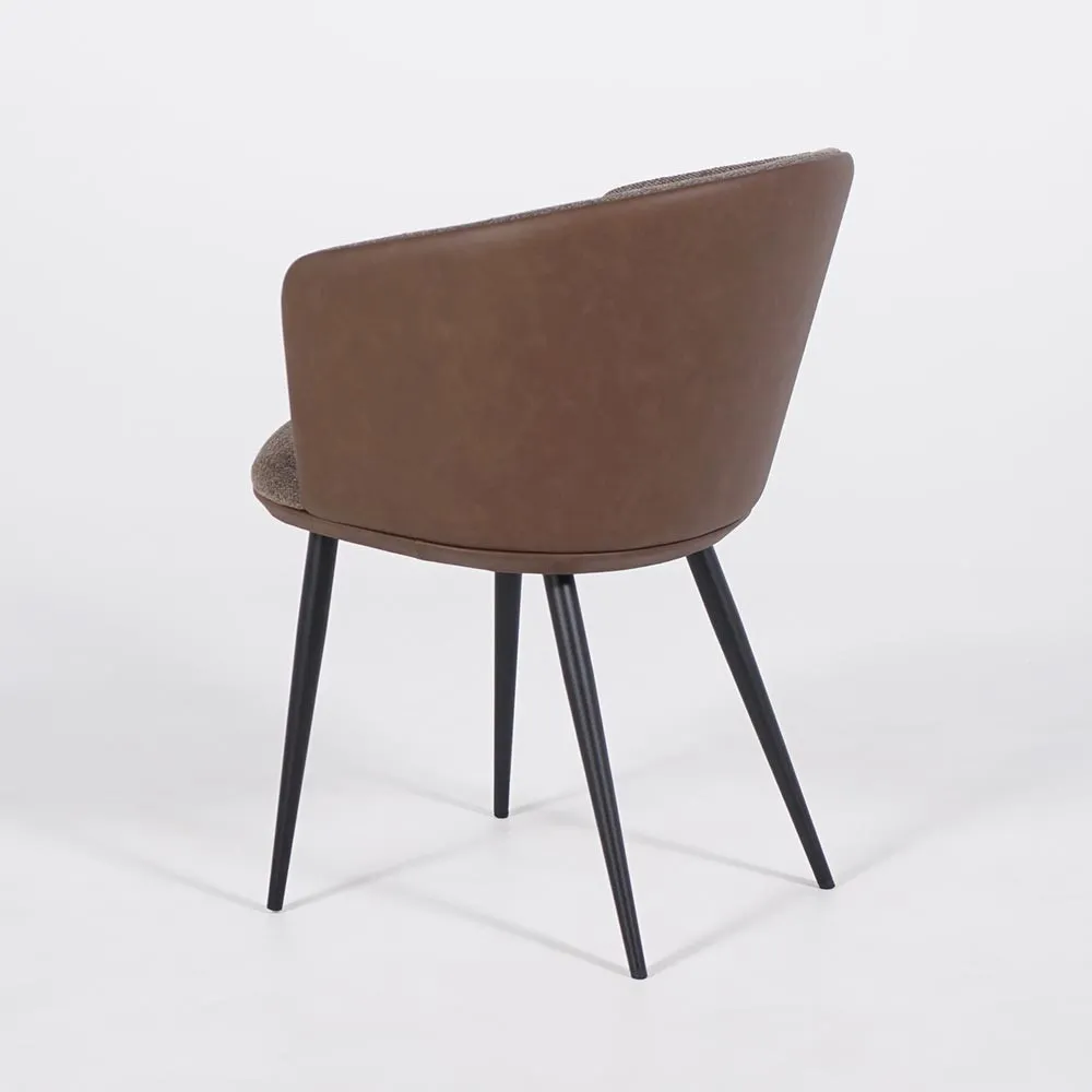 Eetkamerstoel in bruine boucléstof, bruin kunstleer – Hey