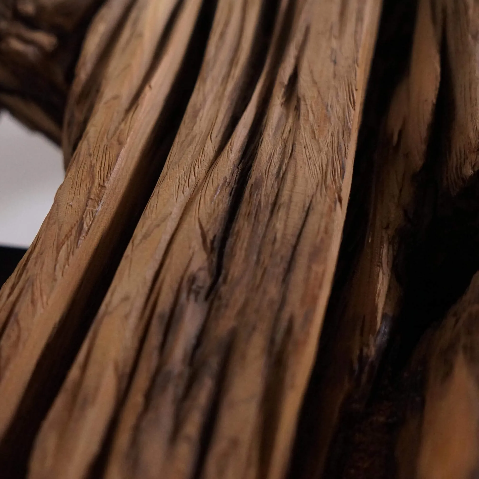 Elke salontafel met glazen blad en spoorbielzen Railwood wordt met de hand vervaardigd uit gerecupereerd massief hout, afkomstig van zorgvuldig geselecteerde oude spoorbielzen en constructies met een unieke patina en karakter. De natuurlijke onregelmatigheden van het hout – zijn groeven, scheuren en tijdloze nuances – vertellen een uniek verhaal: dat van het materiaal in zijn meest pure staat. Wij wilden deze ziel behouden en haar versterken door sobere, verfijnde afwerkingen.