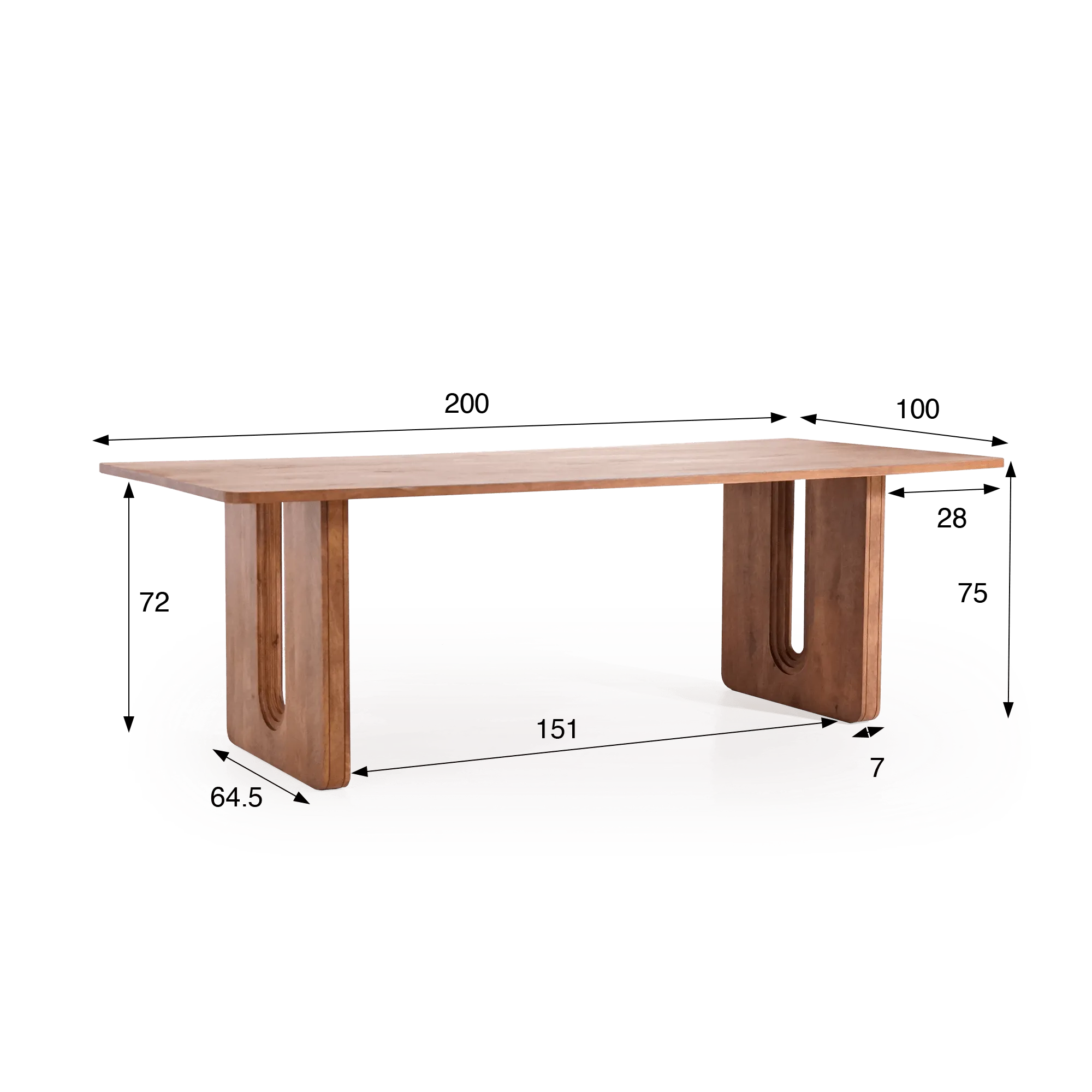 Eettafel in massief mangohout, afwerking in natuurlijke bruine tint – Noba