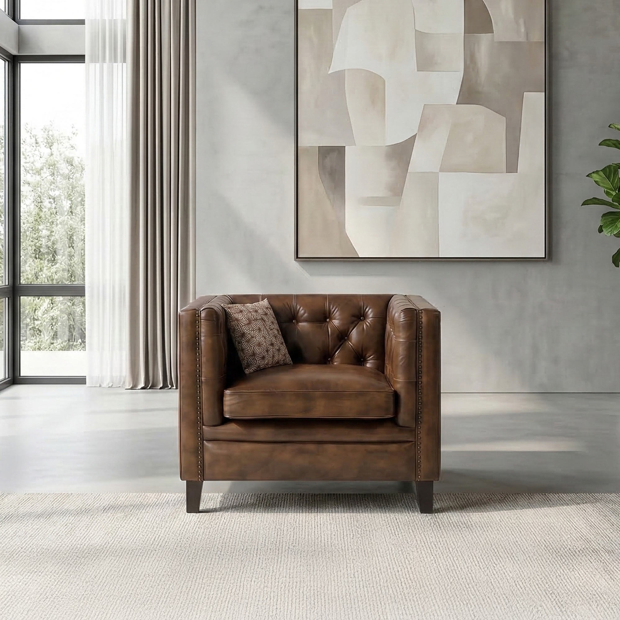 Fauteuil in bruin buffelleer Chesterfield – Charles