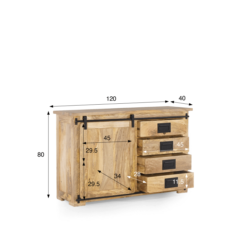 De keuze voor mangohout, bekend om zijn warme tinten en natuurlijke duurzaamheid, lag voor de hand. Elk meubel wordt met de hand vervaardigd, met oog voor precisie en uniciteit. De natuurlijke onregelmatigheden van het hout zijn geen gebreken, maar tekenen van vakmanschap en maken elk stuk uniek. Dit meubel wordt volledig gemonteerd geleverd en behandeld tegen vocht, zodat het eenvoudig te plaatsen is en direct klaar is om je interieur te verfraaien.