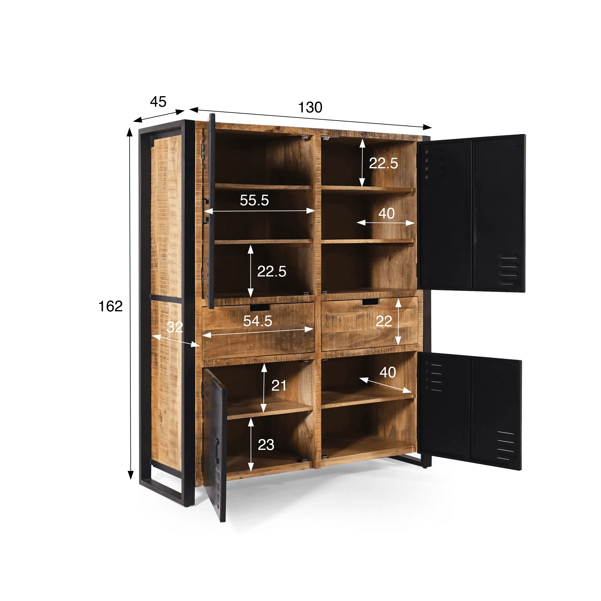 Kansas Kast van massief mangohout met metalen deuren 130 cm – Kansas