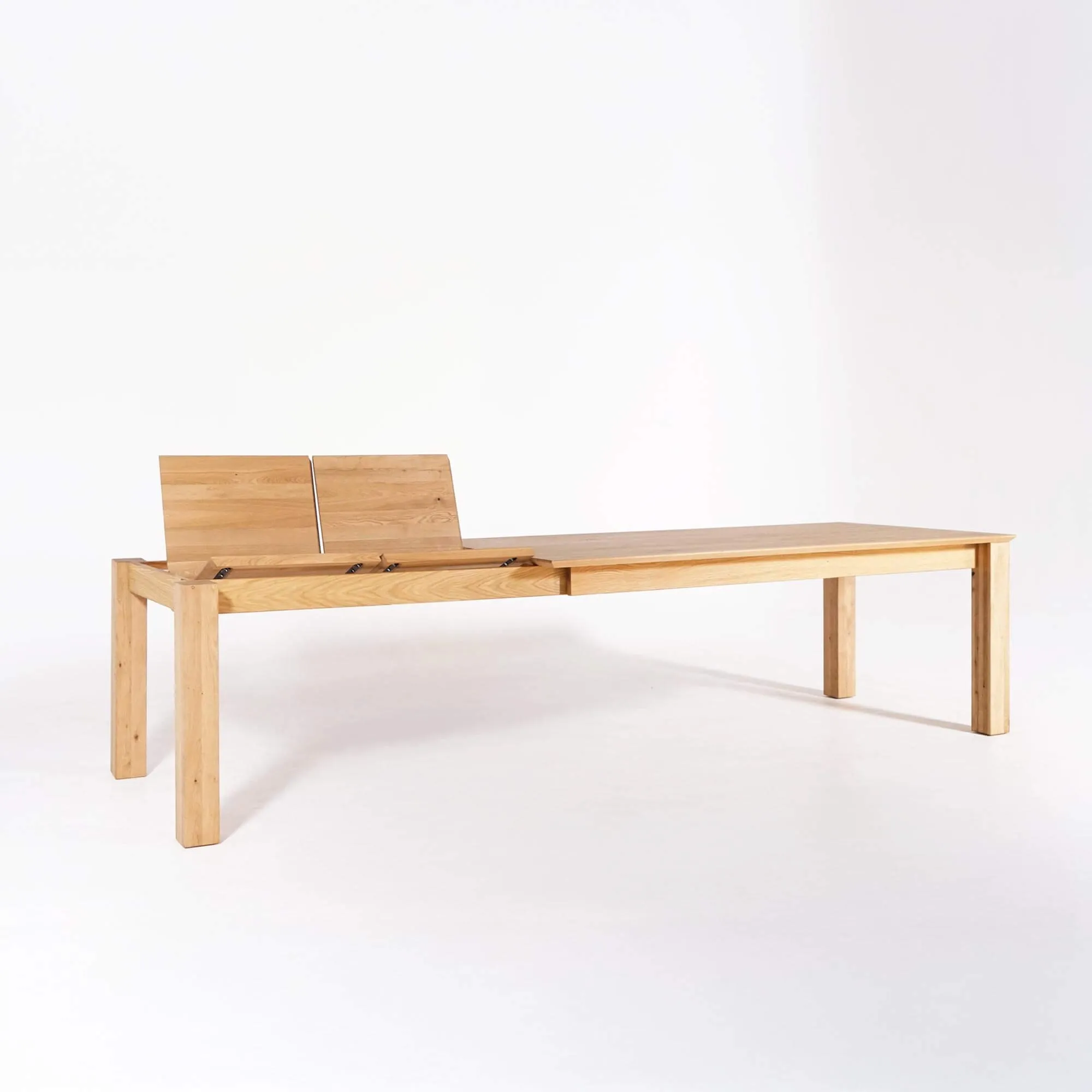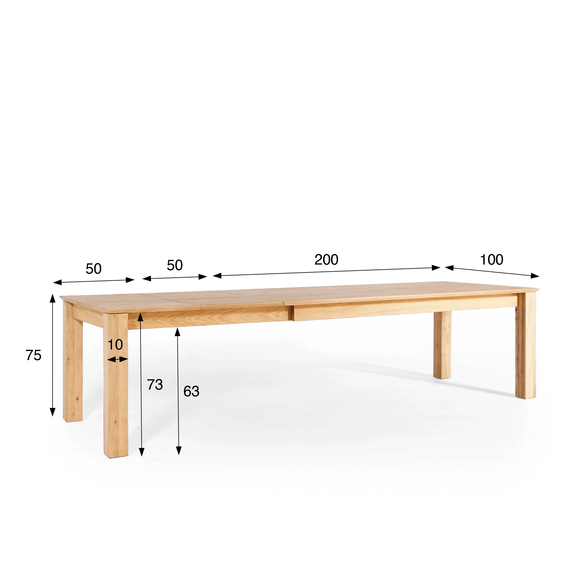 Eettafel van eikenhout 200 x 100 cm met verlengstukken van 2 x 50 cm