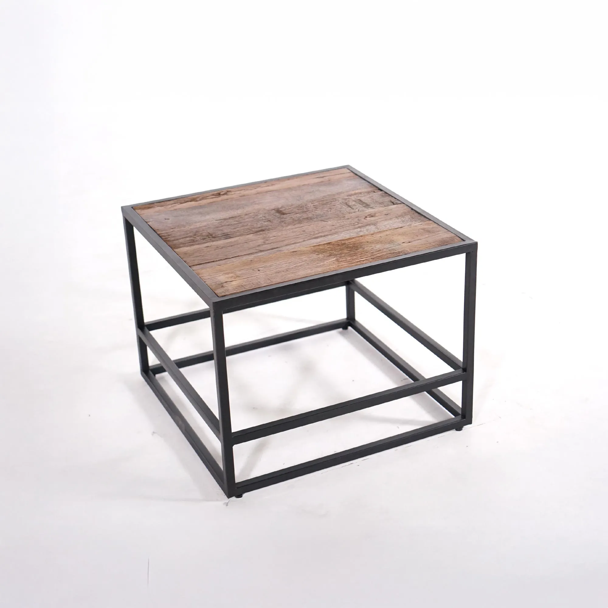 We hebben de salontafel in gerecycleerd hout Recycled ontworpen als een emblematisch stuk van onze visie: de authenticiteit van gerecycleerd hout combineren met de strakke lijnen van zwart metaal. Deze creatie belichaamt de essentie van onze collectie, waar de charme van herwonnen materiaal samensmelt met de precisie van industrieel design.