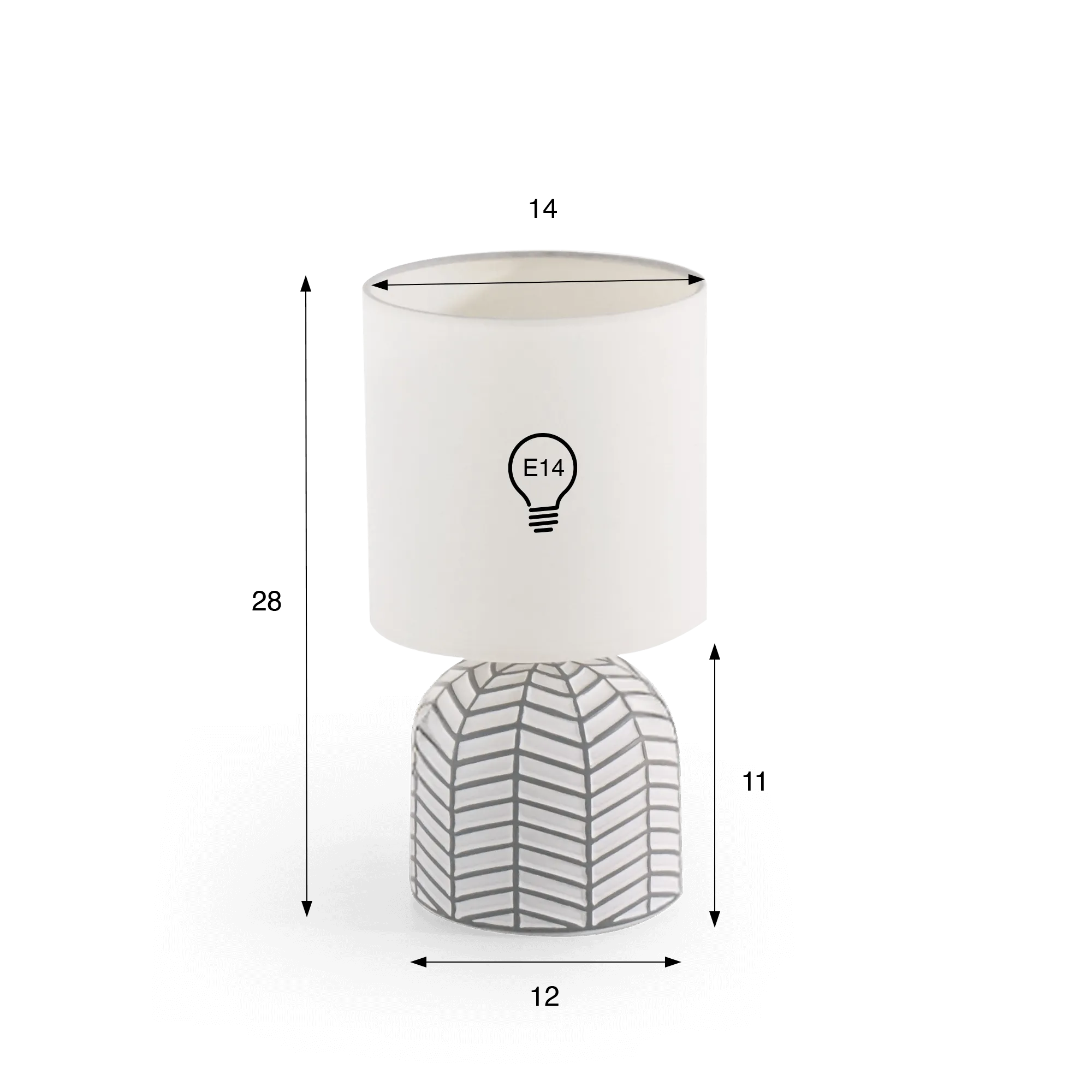 De voet van deze ambachtelijke keramieken lamp vormt de ziel van dit model. Volledig met de hand vervaardigd, toont hij een geometrisch reliëf dat zorgvuldig is gesculpteerd en vervolgens geschilderd, waarbij elke lijn een lichte onregelmatigheid vertoont als teken van authentiek vakmanschap. We wilden deze tactiele rijkdom bewaren, die het stuk zijn unieke karakter geeft. Met een hoogte van ongeveer 11 cm en een diameter van 12 cm vormt de stabiele voet de basis voor een cilindrische lampenkap van 14 cm diameter en een totale hoogte van 28 cm, ontworpen om het licht zacht te verspreiden. Samen vormen ze een compacte ambachtelijke keramieken lamp, perfect geschikt voor een nachtkastje, bureau of console in de hal.