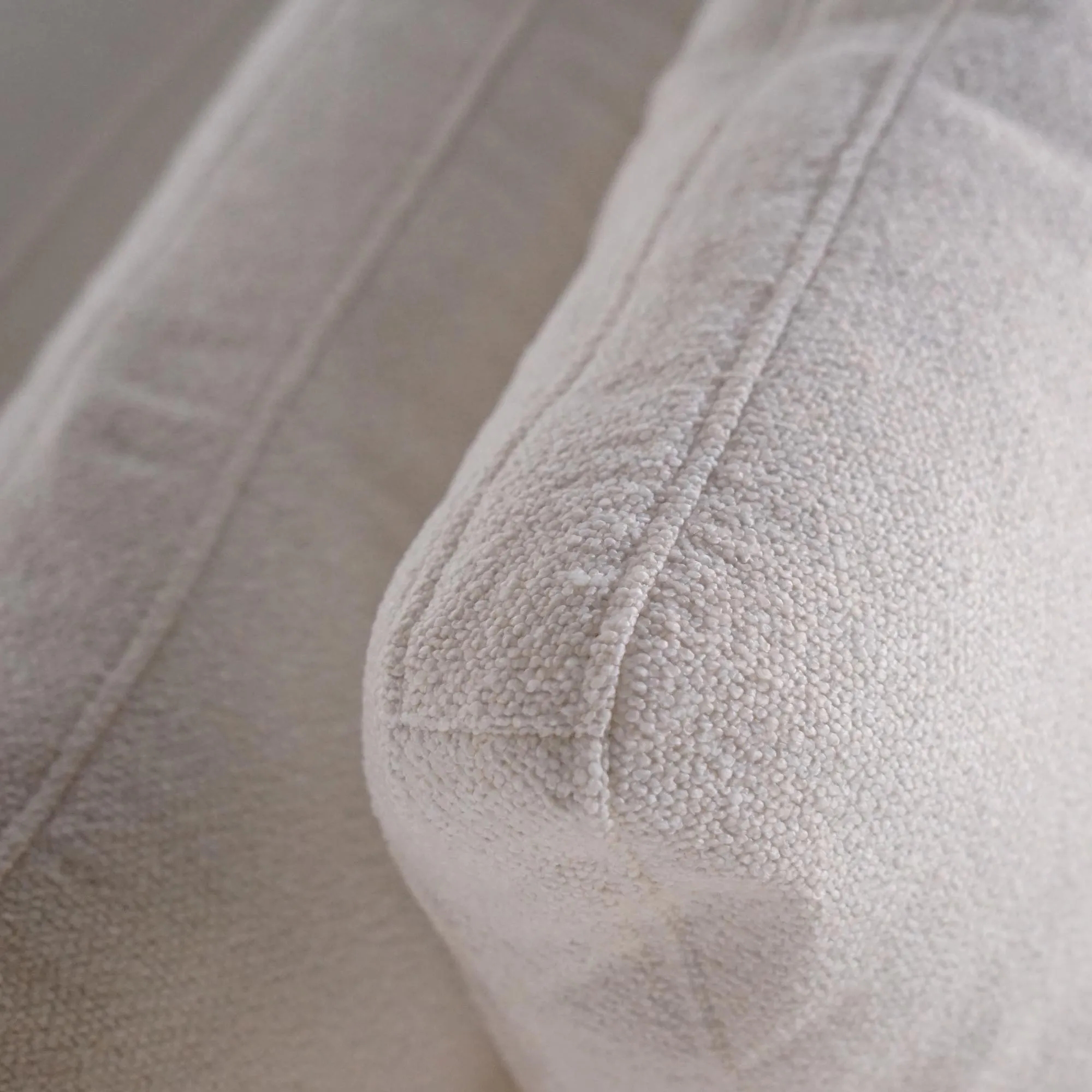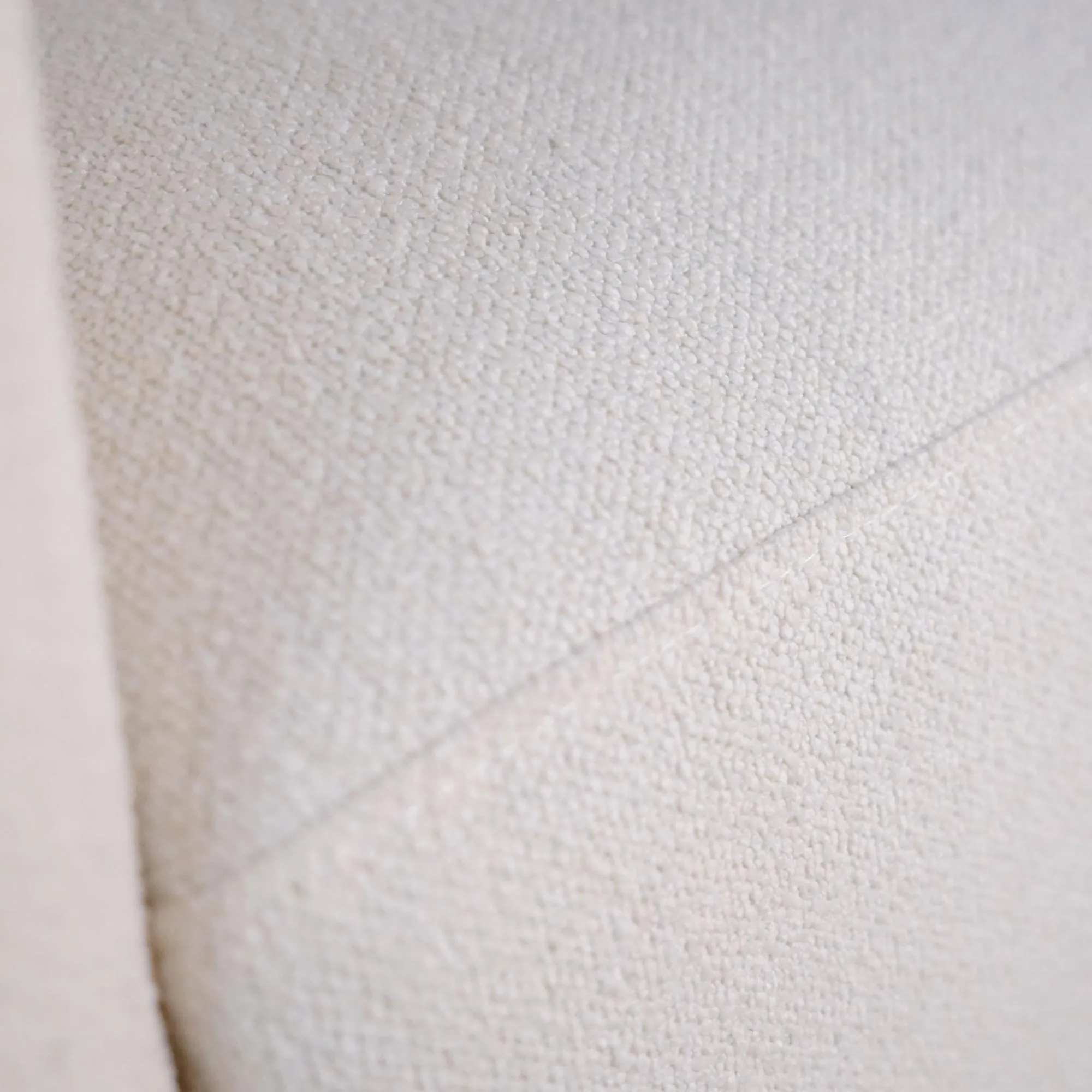 De stof van onze moderne 3-zitssofa Miro werd geselecteerd omwille van zijn subtiel bouclétextuur en hoge slijtvastheid (70.000 Martindale-cycli). De zachte, omhullende aanraking vormt een delicaat contrast met de sobere lijnen. Dankzij de waterafstotende behandeling is de stof onderhoudsvriendelijk, bestand tegen lichte vlekken en behoudt hij zijn glans in de tijd. Deze stof, gecertificeerd volgens de Europese brandveiligheidsnormen, combineert veiligheid en duurzaamheid zonder in te boeten aan esthetiek.