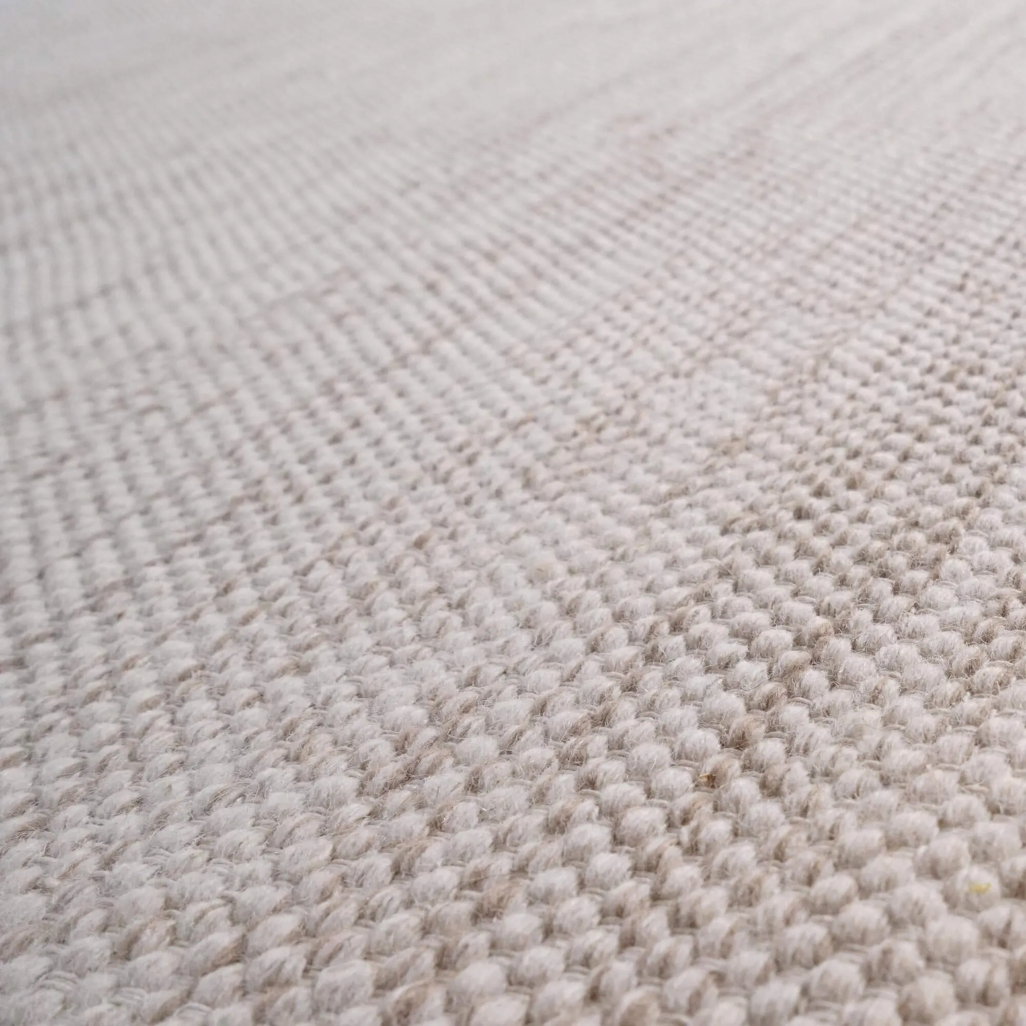 Met het Elowen wollen tapijt van 160 × 230 cm wilden we een stuk creëren dat de ruimte omhult met zachtheid en natuurlijkheid, terwijl het de kamer op een subtiele manier structureert. Al vanaf de eerste schetsen bedachten onze designers een wollen en katoenen tapijt dat meteen een gevoel van comfort brengt, zonder ooit de sfeer te verzwaren. De delicate beige tint, verrijkt met licht gemêleerde nuances, vangt het licht en verwarmt visueel de vloer, of die nu licht of donker is.