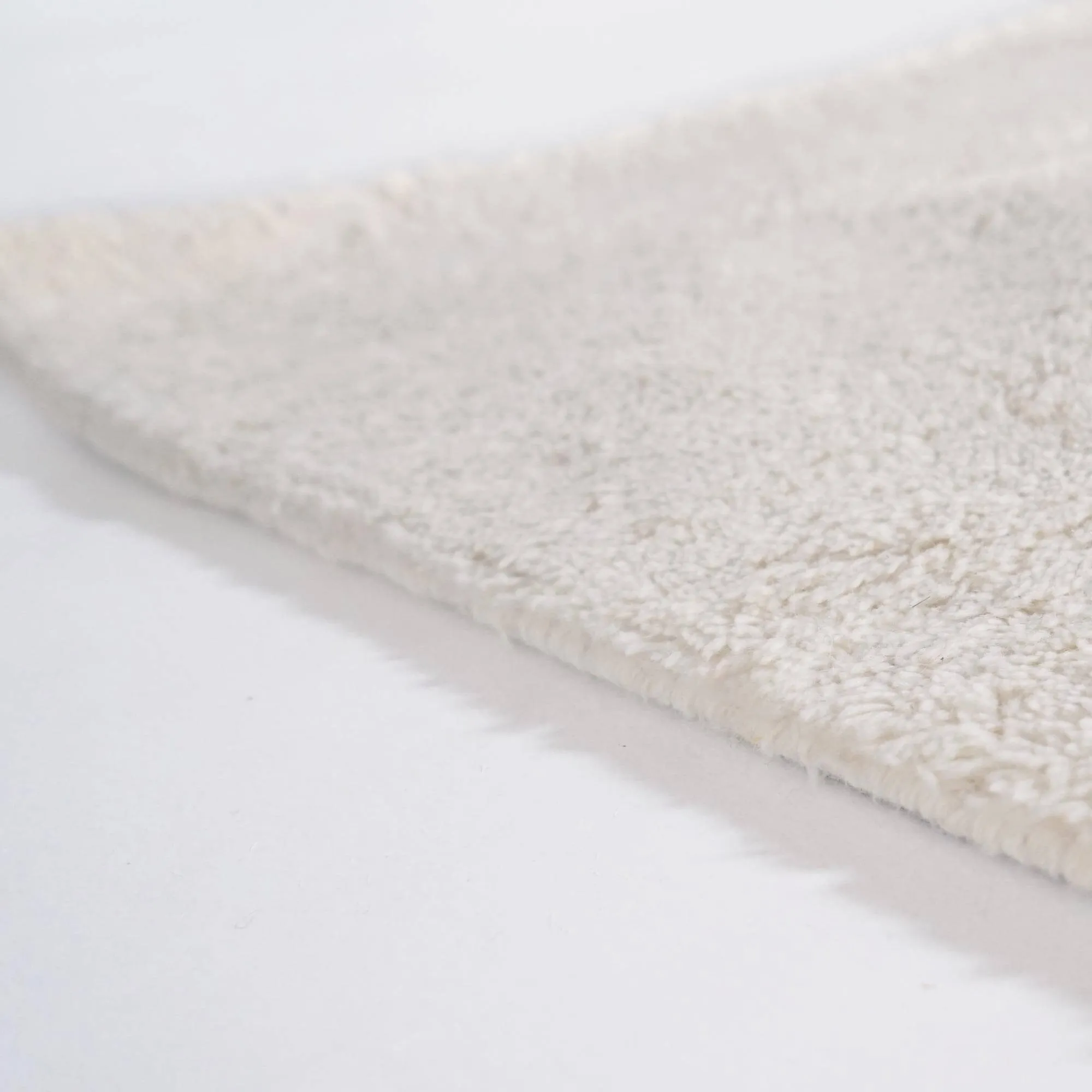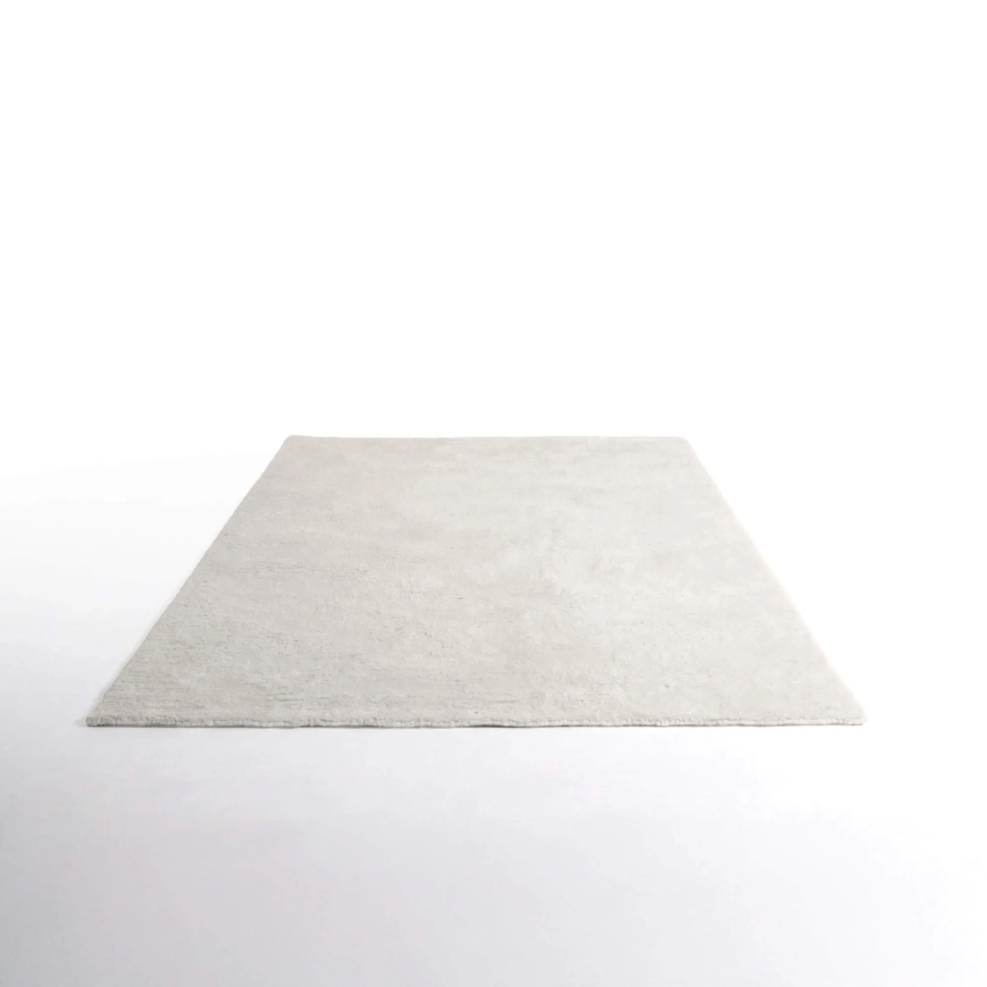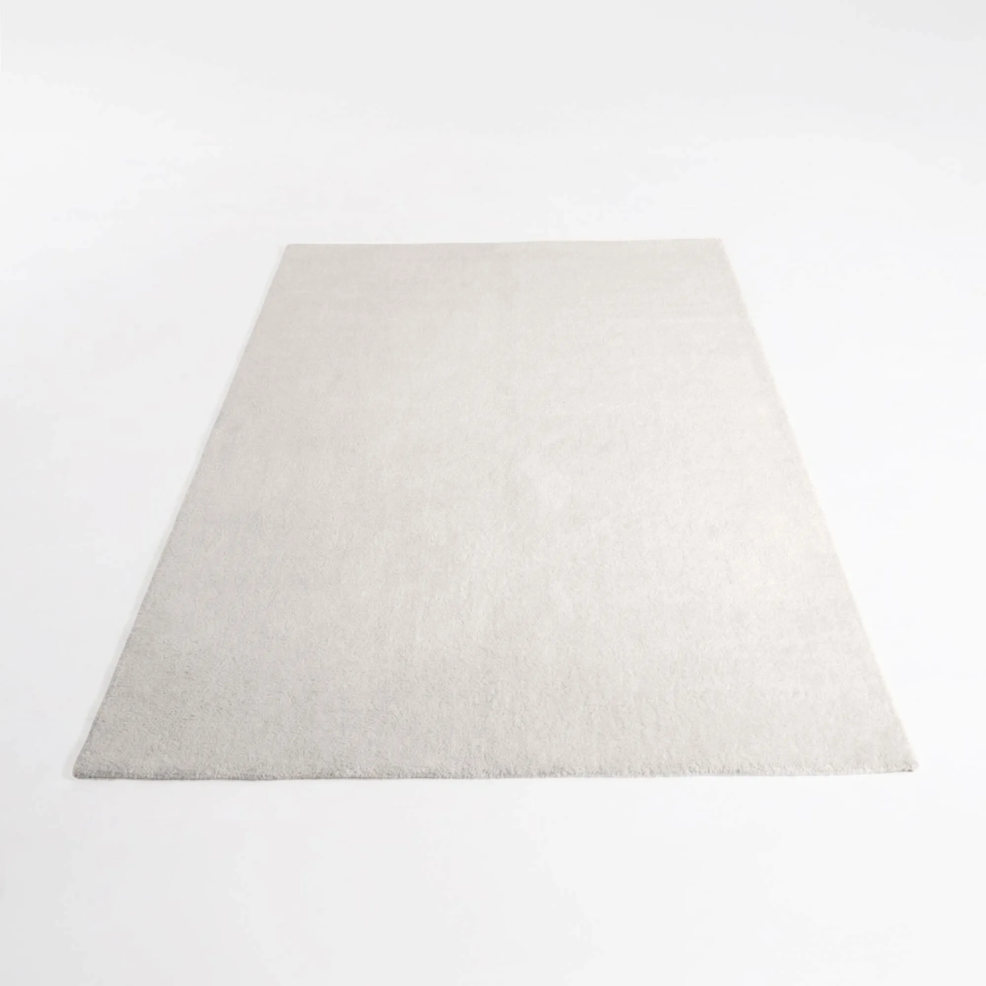 Dit wollen tapijt is volledig met de hand vervaardigd en bestaat voor 100% uit natuurlijke wol, wat zorgt voor een soepele en aangename touch, ontworpen om het dagelijkse leven te begeleiden. Het fijn getextureerde oppervlak vangt het licht op subtiele wijze en creëert lichte nuances die diepte geven aan de heldere tint. Dit warme wit verzacht visueel de ruimte en combineert moeiteloos met materialen zoals hout, leer of natuurlijke textielsoorten.