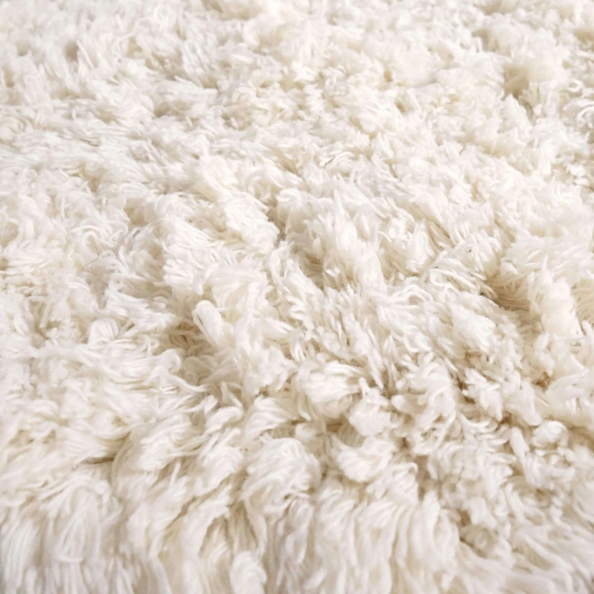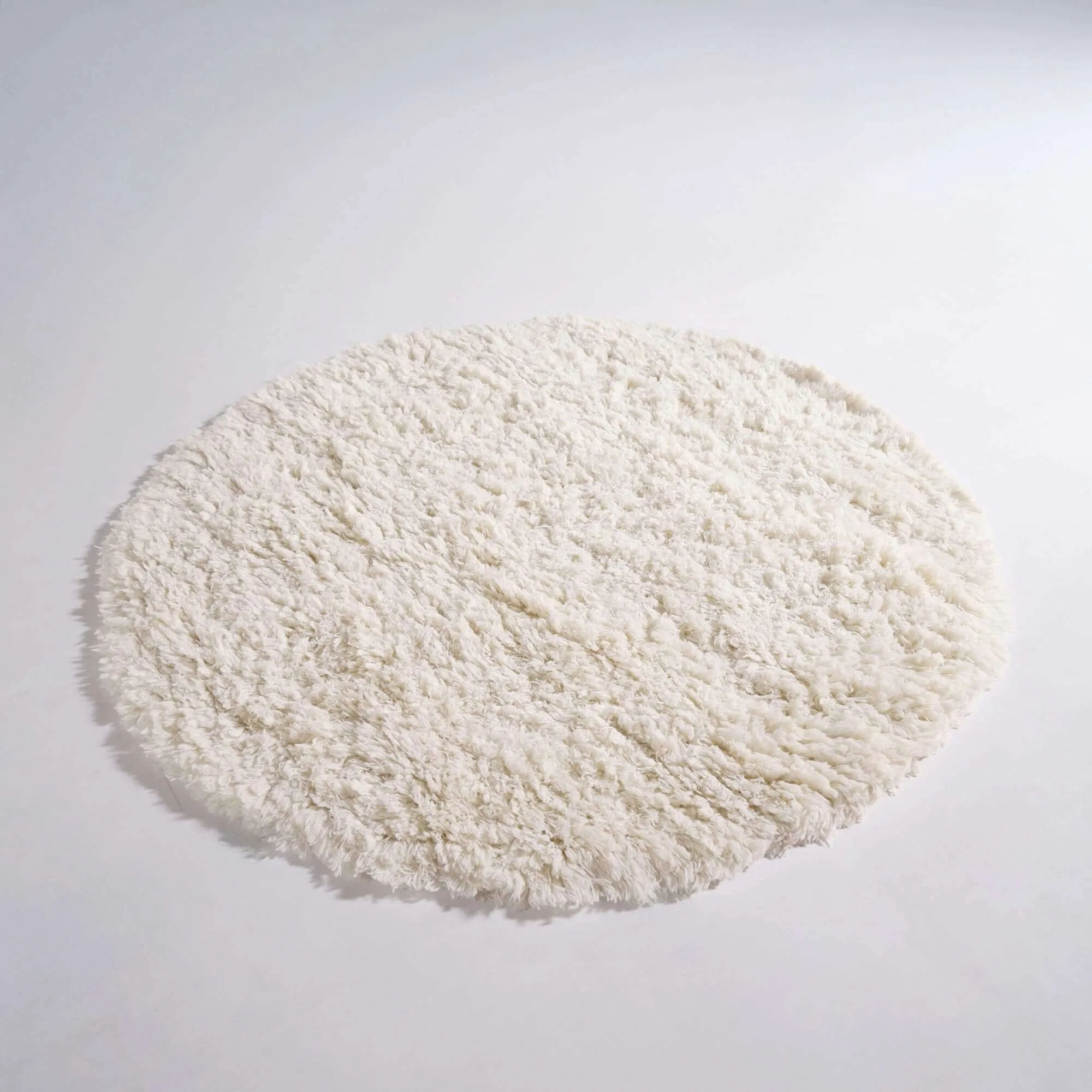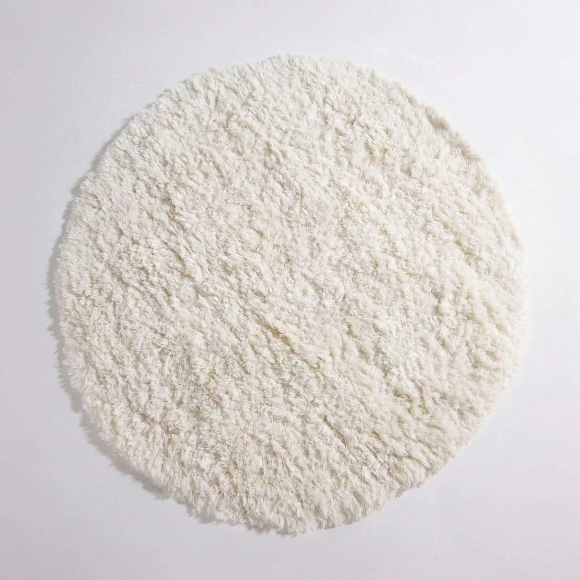 De witte, genuanceerde en nooit uniforme tint benadrukt de rijkdom van het materiaal. Ze verspreidt een zachte warmte in de ruimte en laat zich moeiteloos combineren met uiteenlopende interieurs, van een strak ingerichte woonkamer tot een meer omhullende sfeer. We ontwierpen dit ronde wollen tapijt als een dagelijks leefobject: aangenaam in aanraking, uitnodigend en gemaakt om lang mee te gaan dankzij de intrinsieke kwaliteiten van wol.