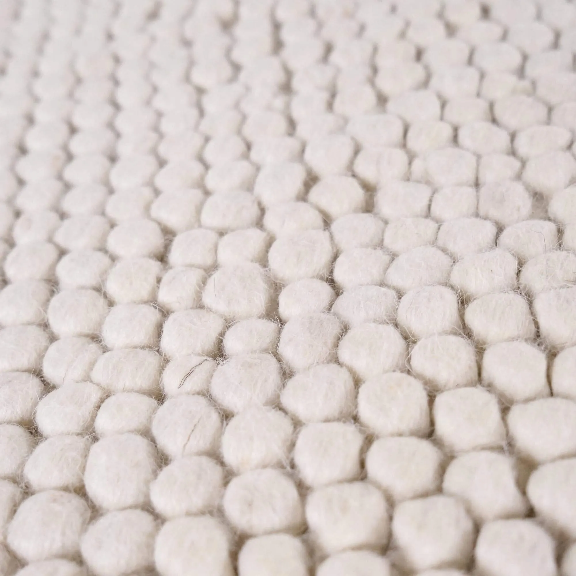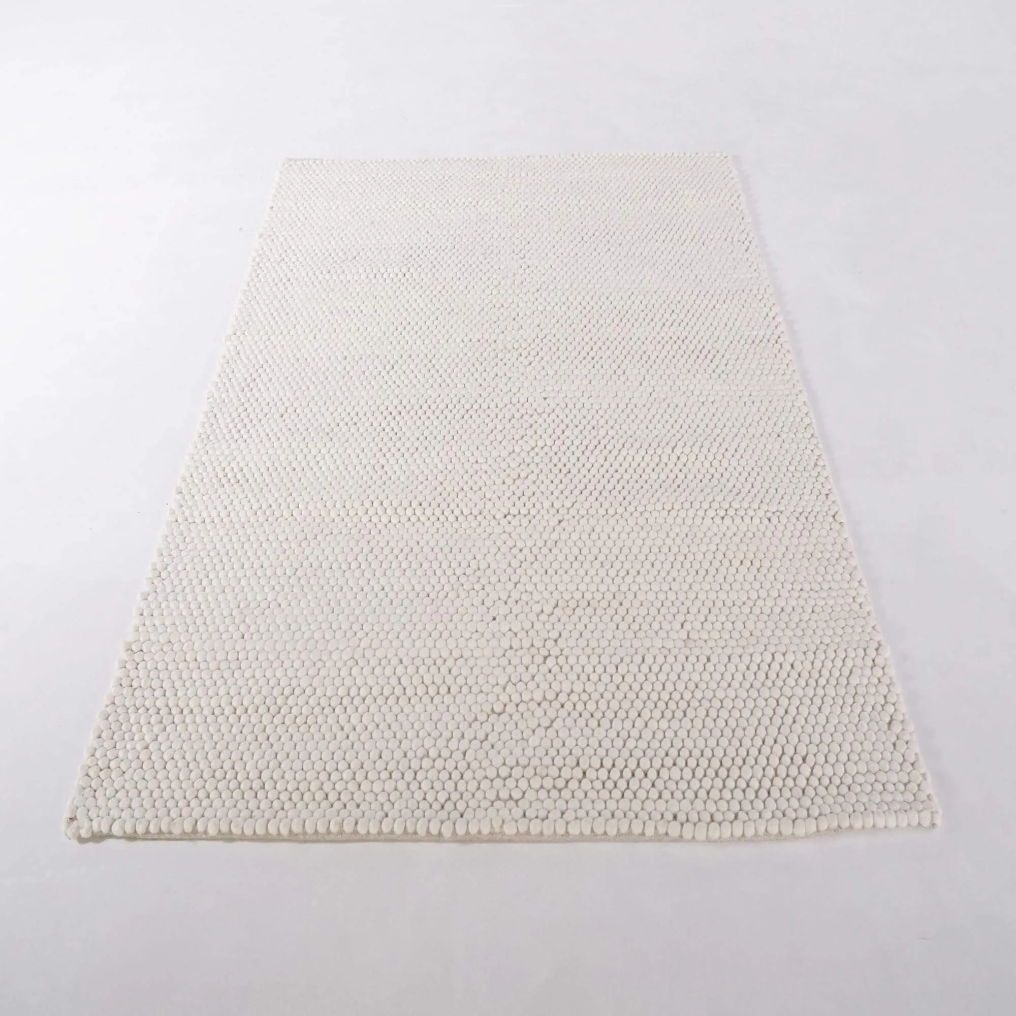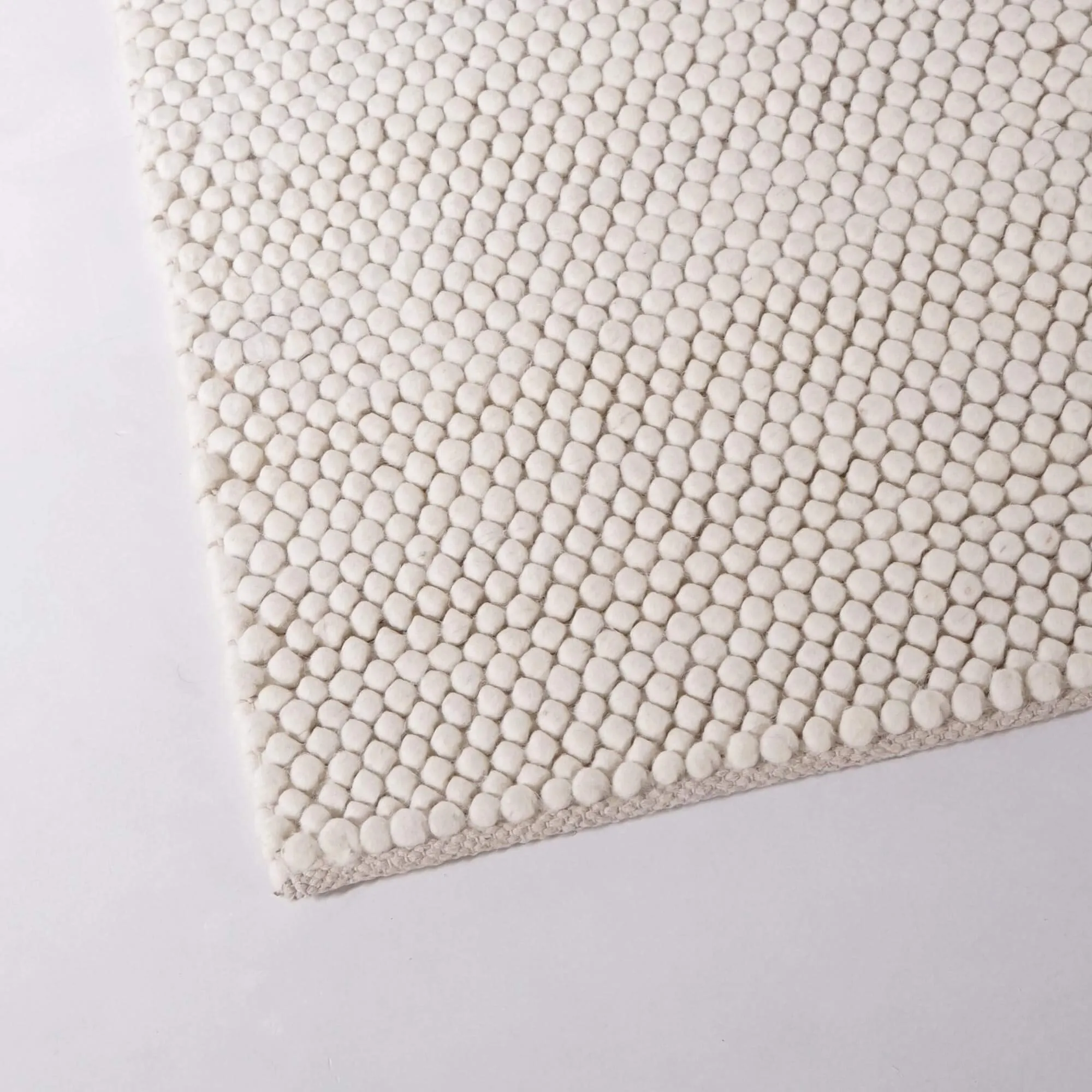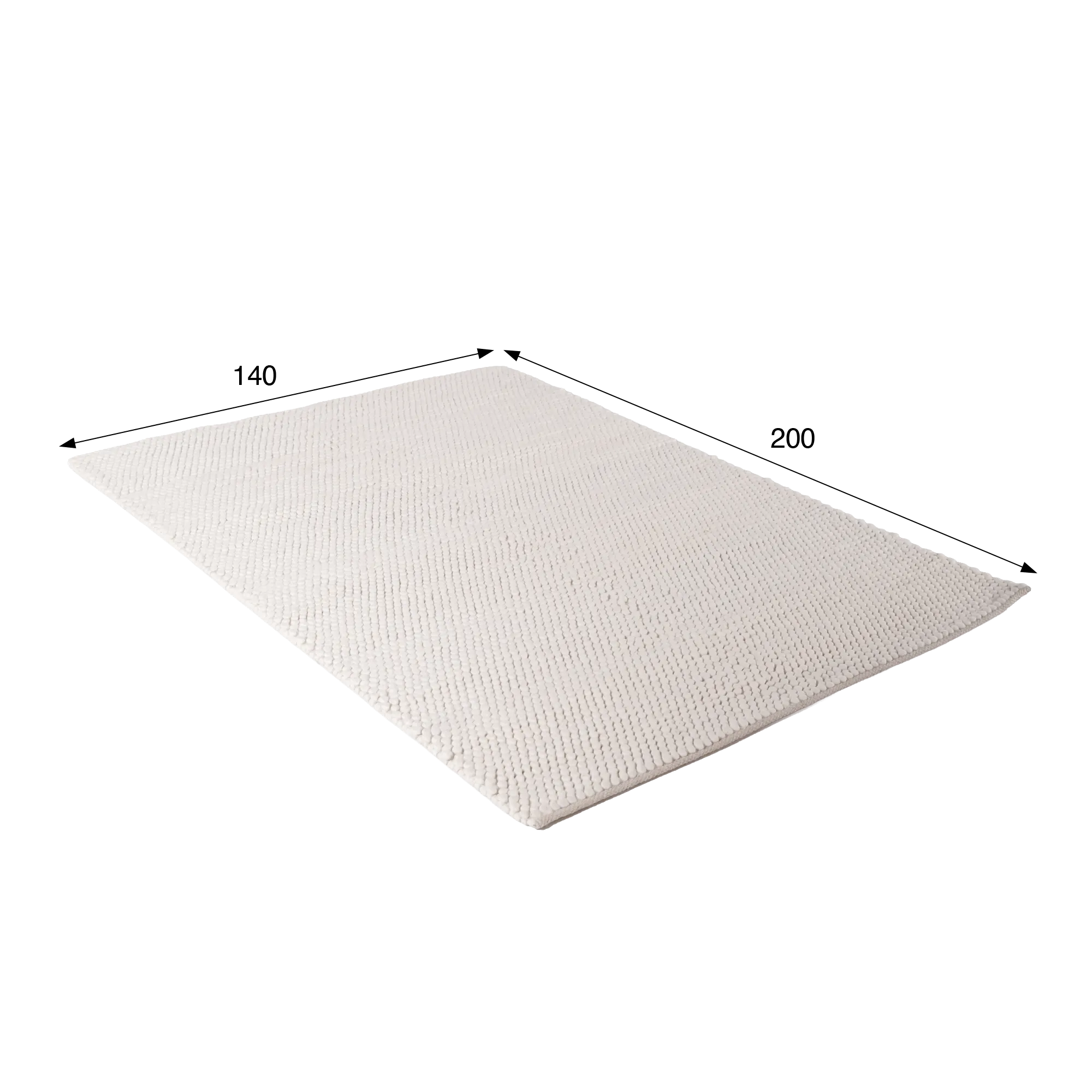 Met zijn afmetingen van 140×200 cm is dit wollen tapijt een bijzonder veelzijdig formaat: groot genoeg om een fauteuil te begeleiden of een leeshoek te structureren, maar compact genoeg om ook in kleinere ruimtes een plaats te vinden. Visueel creëren de lichte kleur en het dichte oppervlak met kleine lusjes een subtiel contrast met ruwe materialen zoals leer of massief hout. Precies die harmonie tussen visuele zachtheid en natuurlijke materialen lag aan de basis van onze intentie bij het ontwerpen van dit wollen tapijt.
