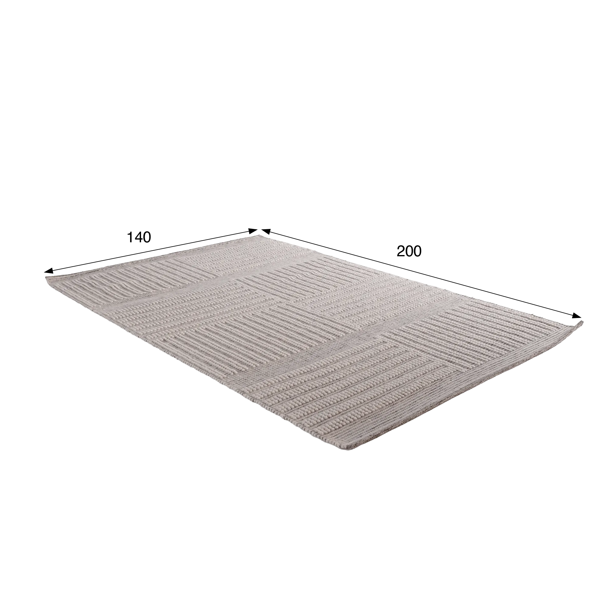 Ontworpen als een verbindend element tussen meubelstukken en interieurarchitectuur, past het wollen tapijt Wola binnen een gevoelige benadering van het interieur. Onze ontwerpers bedachten dit model als een textiele basis die een ruimte verankert en tegelijk zachtheid en ritme toevoegt. Het formaat 140 x 200 cm van dit wollen tapijt werd gekozen om zich op natuurlijke wijze aan te passen aan leefruimtes, of het nu gaat om een open woonkamer, een leeshoek of een slaapkamer met een ingetogen sfeer.