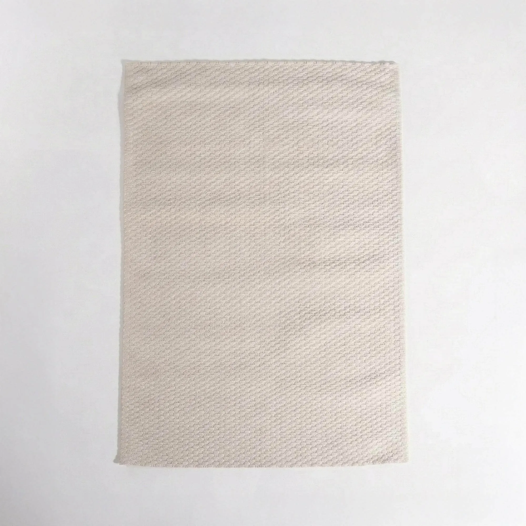 Het formaat van 140 x 200 cm van dit wollen tapijt is ontworpen om een ruimte te structureren zonder ze vast te zetten. In een woonkamer creëert het een gezellige zone rond de bank; in een slaapkamer verzacht het het gevoel van de vloer bij het ontwaken; in een bureau of leeshoek brengt het warmte en nodigt het uit tot ontspanning. Het regelmatige, licht reliëfachtige weefsel van dit wollen tapijt vangt het licht anders naargelang het moment van de dag en onthult zo de volledige rijkdom van de natuurlijke wol.