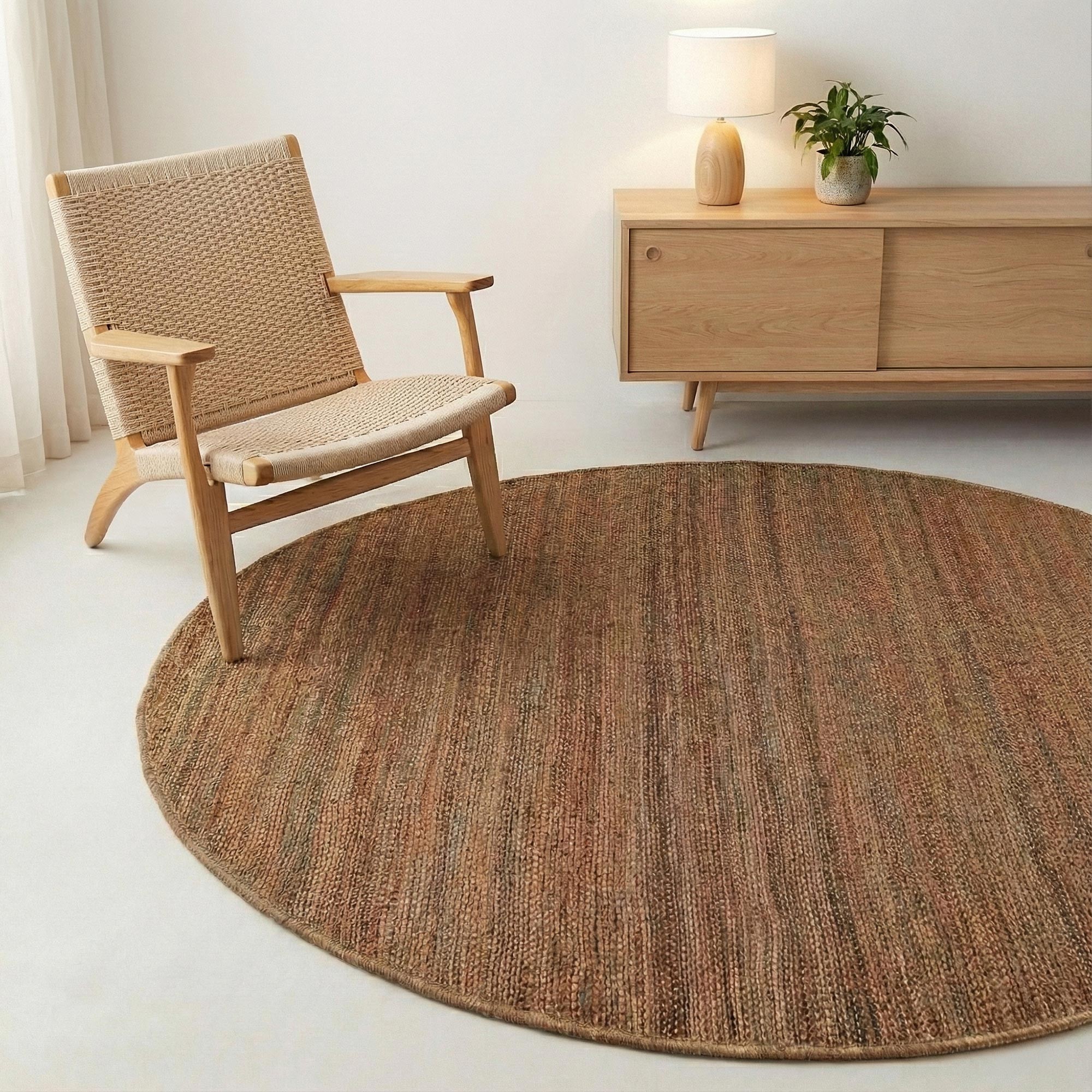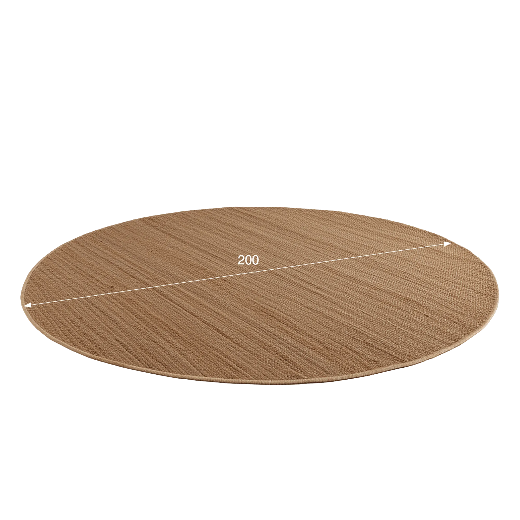 In het dagelijks gebruik onderscheidt dit juten tapijt zich door zijn robuustheid. Het materiaal is bestand tegen intensief gebruik en behoudt tegelijk zijn getextureerde, licht onregelmatige uitstraling, die zowel visueel als tactiel wordt gewaardeerd. Bijzondere aandacht werd besteed aan de afwerking van de rand: de boord van dit ronde juten tapijt is zorgvuldig afgewerkt om een duurzame vormvastheid en een harmonieuze, perfect cirkelvormige silhouet te garanderen.