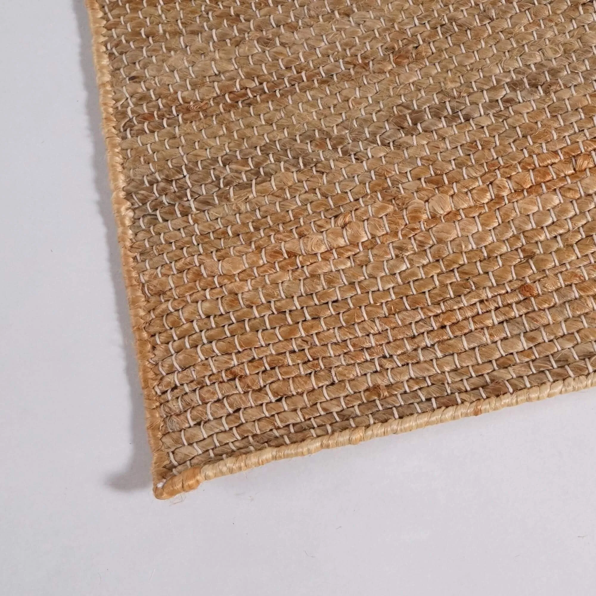 Dit jute tapijt is volledig met de hand vervaardigd en geweven uit 100% jute, een plantaardige vezel die bekendstaat om haar stevigheid en natuurlijk warme uitstraling. Het vlechtwerk onthult subtiele wit- en beigenuances, aangevuld met natuurlijke variaties die het tapijt een levendig karakter geven. Elke vezel van dit jute tapijt vangt het licht op een andere manier, wat zorgt voor een levendig oppervlak dat zowel aangenaam is voor het oog als voor het gevoel. Met een dikte van ongeveer 4 mm behoudt Noa een mooie aanwezigheid op de vloer en blijft het tegelijk gemakkelijk in het dagelijks gebruik.