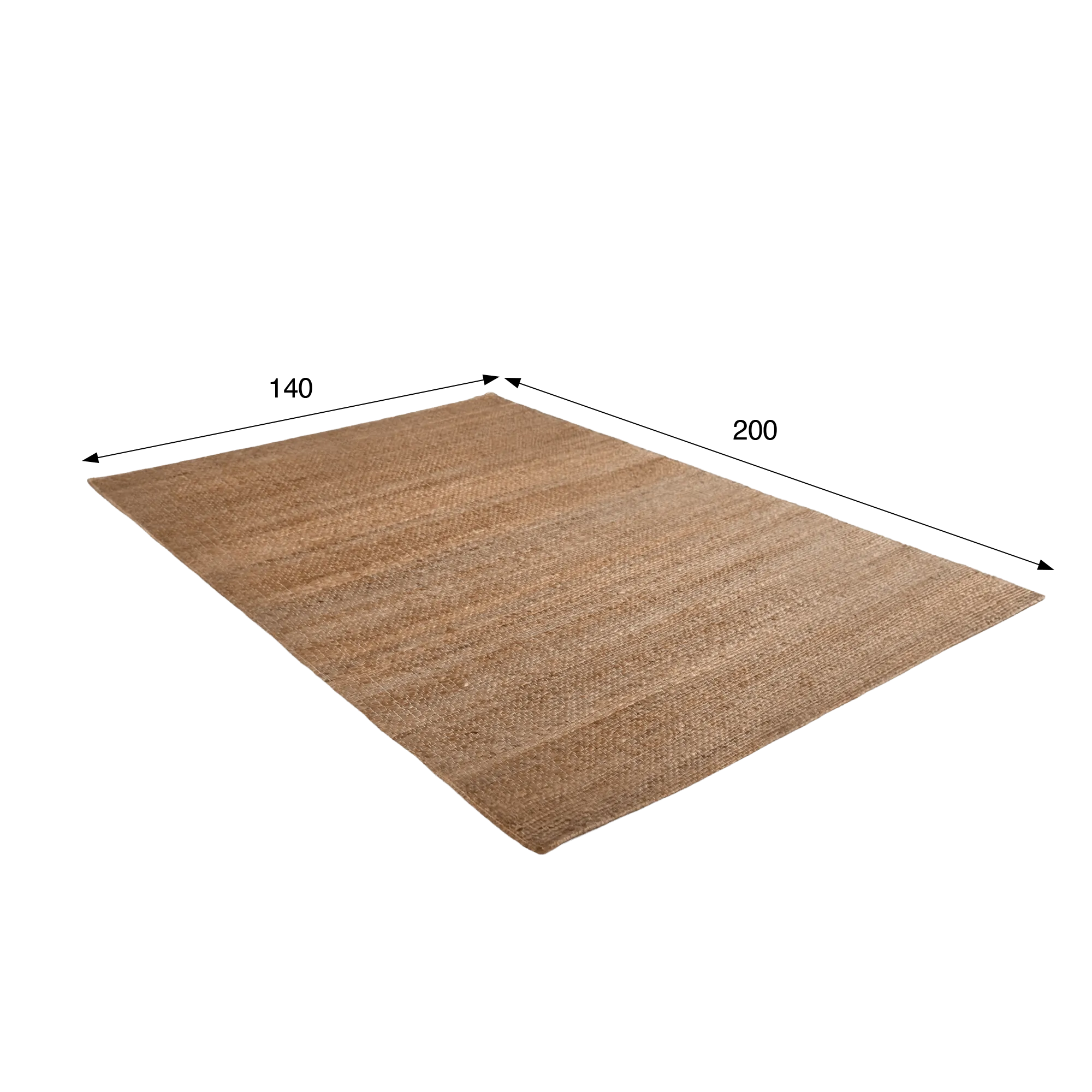 Het rechthoekige formaat van 140 x 200 cm van dit jute tapijt werd ontworpen om harmonieus te integreren in uiteenlopende ruimtes. Het vindt vanzelf zijn plaats onder een salontafel, voor een sofa of in een leeshoek, waar het de ruimte op een zachte manier afbakent. In een slaapkamer zorgt het voor een onmiddellijk gevoel van comfort bij het opstaan, terwijl het in een lichtrijke woonkamer een bohemien en uitnodigende sfeer versterkt, zonder ooit de aandacht van het meubilair weg te nemen.