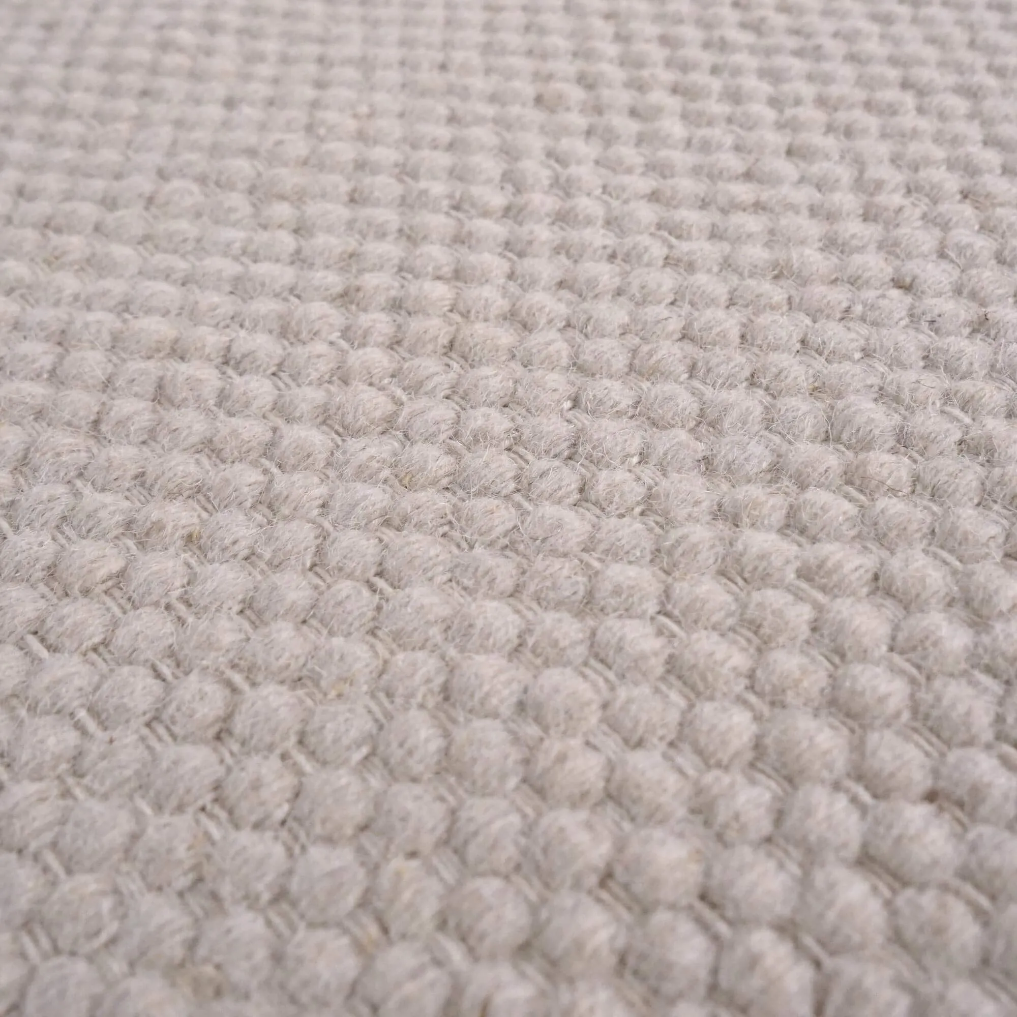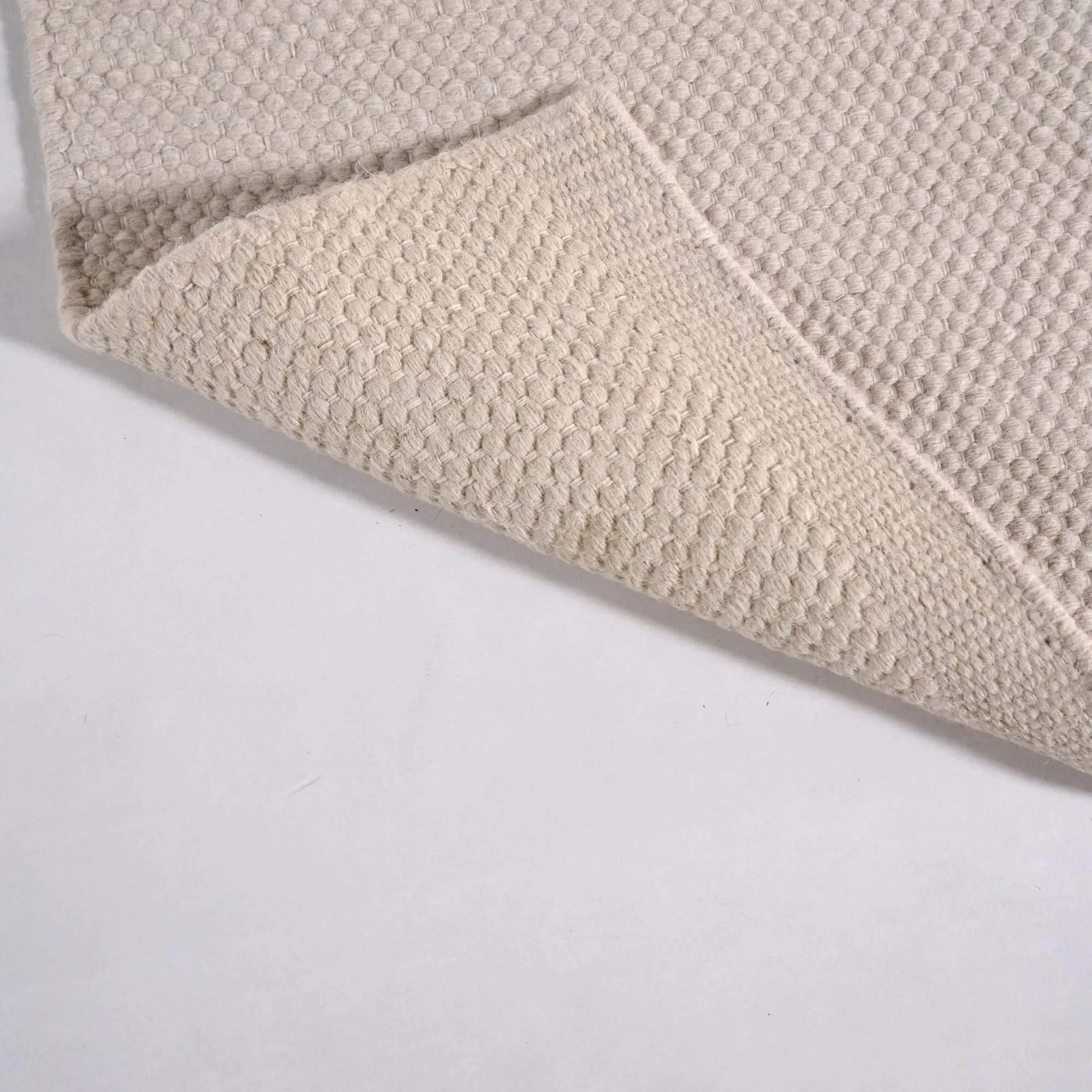 Dit tapijt van wol en katoen is volledig met de hand vervaardigd en combineert een overwegend aandeel wol met een subtiele toevoeging van katoen, in een evenwicht dat is afgestemd op dagelijks gebruik. Wol zorgt voor natuurlijke warmte, een discreet zacht gevoel en het vermogen om licht te vangen, terwijl katoen het weefsel verfijnt en de duurzaamheid versterkt. Het resultaat is een subtiel gestructureerd oppervlak, aangenaam onder de voeten, met een fijn reliëf dat speelt met witte en grijze nuances zonder uitgesproken contrasten. Met een dikte van ongeveer 4 mm behoudt ons Iria tapijt van wol en katoen een slanke uitstraling, die eenvoudig te integreren is in de leefruimte zonder het openen van deuren of doorgangen te hinderen.