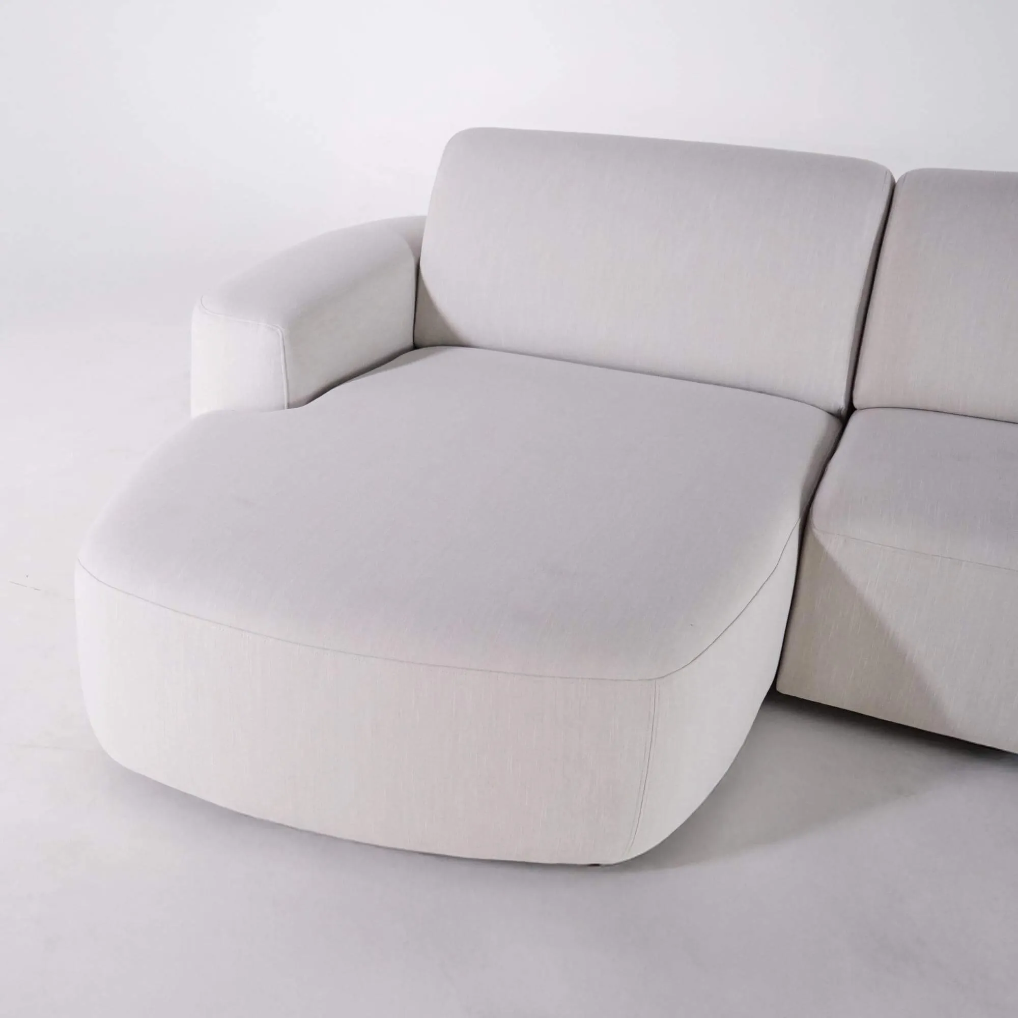 Ontworpen door onze designers als een ode aan zachtheid en evenwicht, belichaamt de hoeksofa met linkerliggedeelte voor 4 personen Kala de ontmoeting tussen ronde vormen en de strakke lijnen van een eigentijds design. De vloeiende belijning, met royaal afgeronde armleuningen en een diepe méridienne, nodigt uit tot ontspanning in een ruimte waar elk detail zorgvuldig is uitgewerkt.