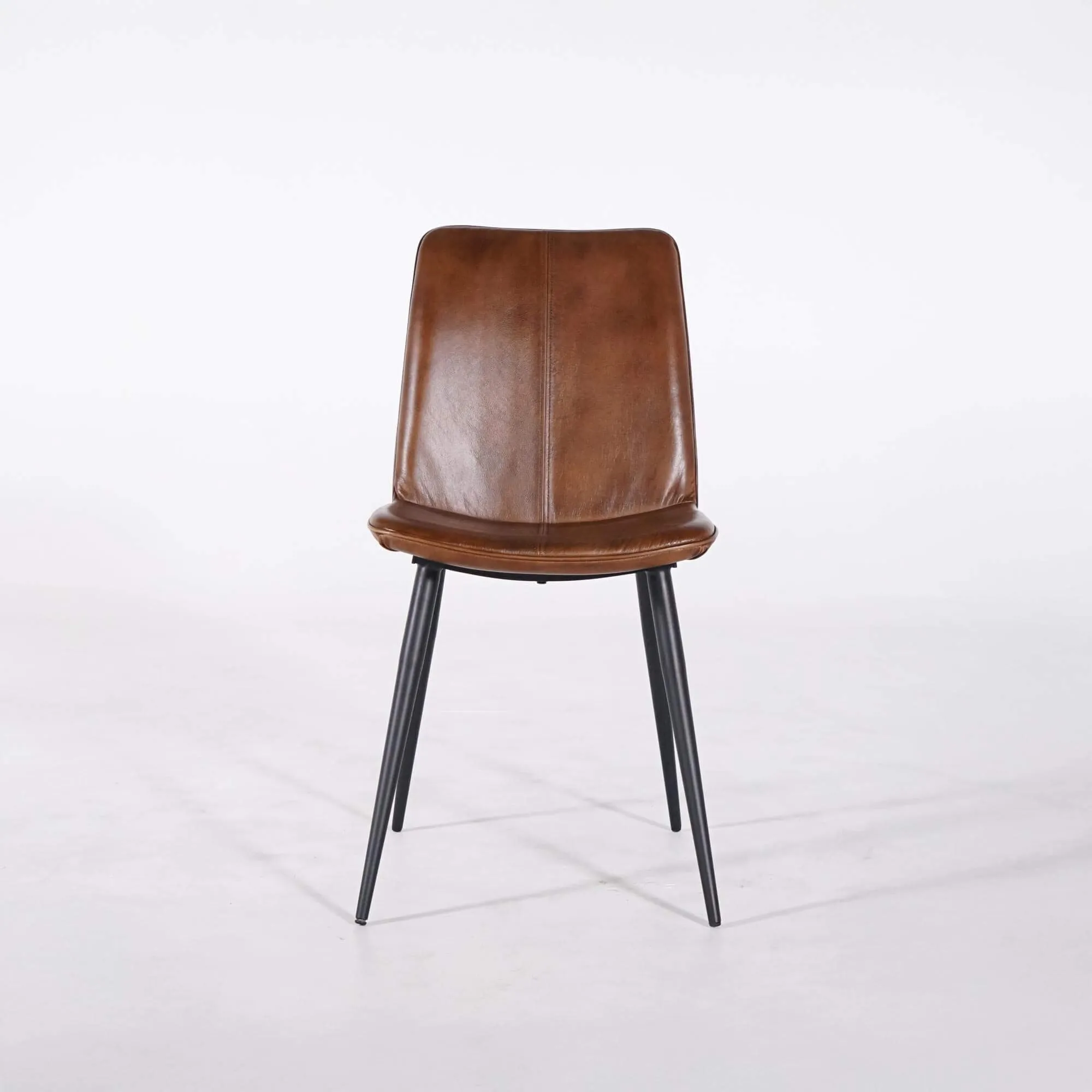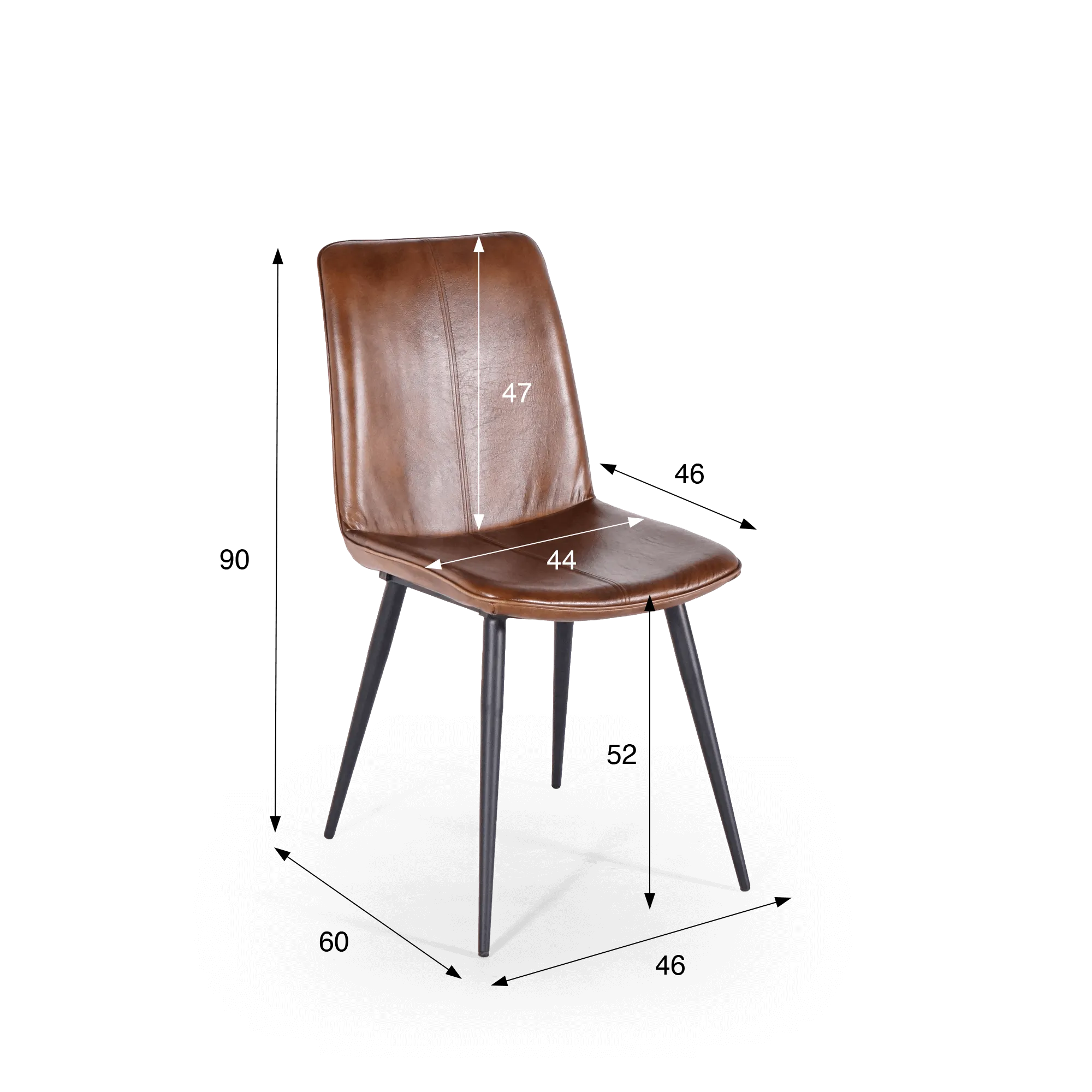 We kozen voor een onderstel in zwart metaal met fijne lijnen, om een mooi contrast te creëren met de warmte van het leer, en tegelijk stabiliteit en duurzaamheid te garanderen. Met een totale hoogte van ongeveer 90 cm en een totale diepte van rond de 60 cm integreert de bruine vintage leren stoel Dock moeiteloos rond een tafel, zonder de ruimte visueel te verzwaren.