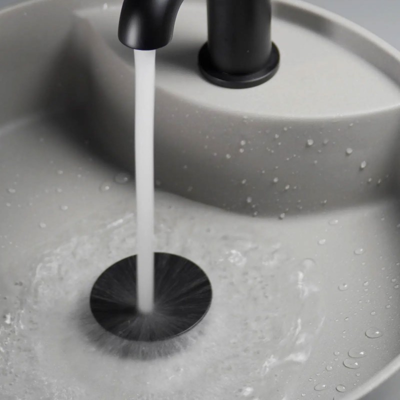 We hebben deze ronde klik-klak wastafelafvoer met metalen manchet, universeel, in mat zwart geselecteerd vanwege haar soberheid en moderne uitstraling, maar ook omwille van de precisie van haar ontwerp. Achter het minimalistische design schuilt de strengheid en kwaliteit die het merk Deante zo’n sterke reputatie hebben bezorgd. Ontworpen volgens het klik-klak-systeem zorgt ze voor een vlotte en intuïtieve bediening: één eenvoudige vingerdruk volstaat om de afvoer te openen of te sluiten – moeiteloos en uiterst betrouwbaar.