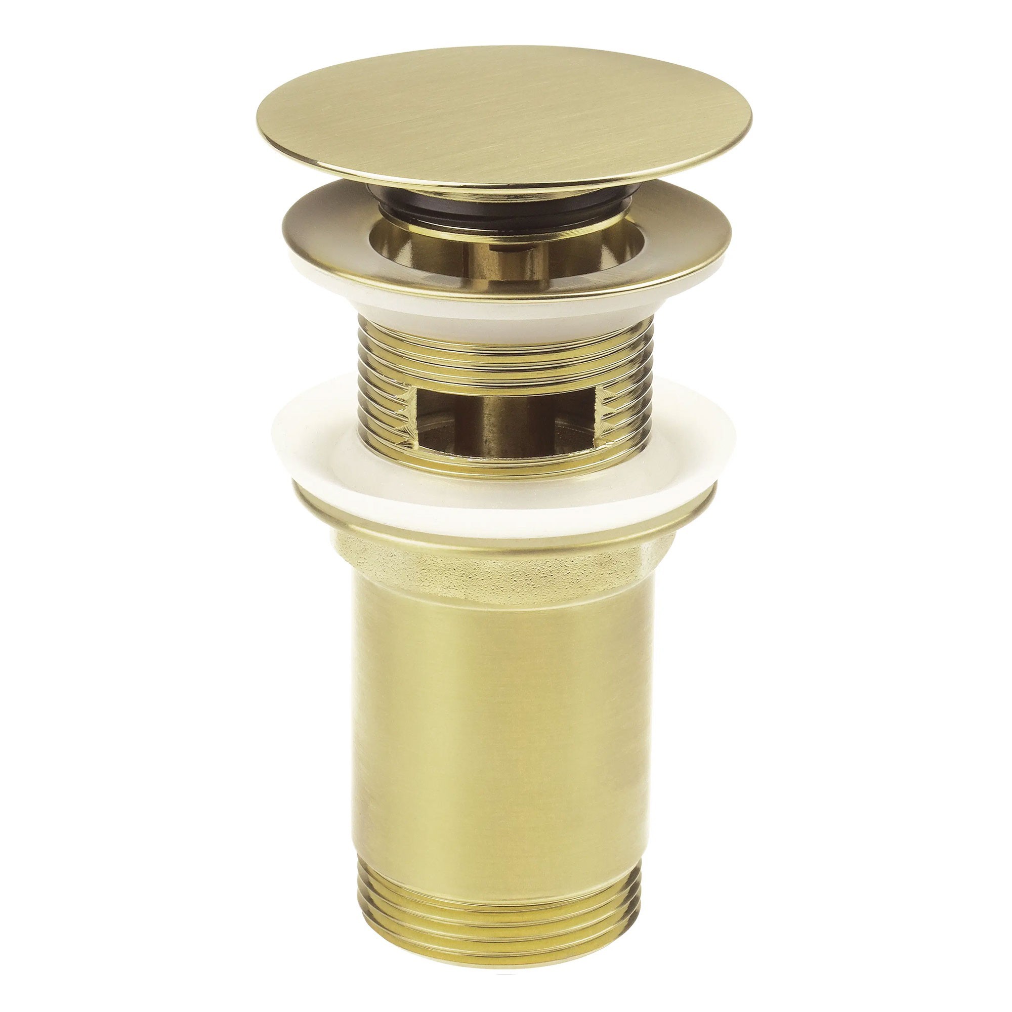 Wij hebben deze klik-klak wastafelafvoer met metalen manchet geselecteerd, universeel, in de afwerking geborsteld goud vanwege de tijdloze schoonheid van de tint en de uitzonderlijke kwaliteit van het ontwerp. Elegant en subtiel, straalt ze een luxueuze uitstraling uit terwijl ze toch verfijnd en sober blijft. Het satijnoppervlak vangt het licht op een delicate manier, waardoor een warme en verfijnde glans ontstaat die perfect harmonieert met waskommen in natuursteen, terrazzo of gepolijst beton.