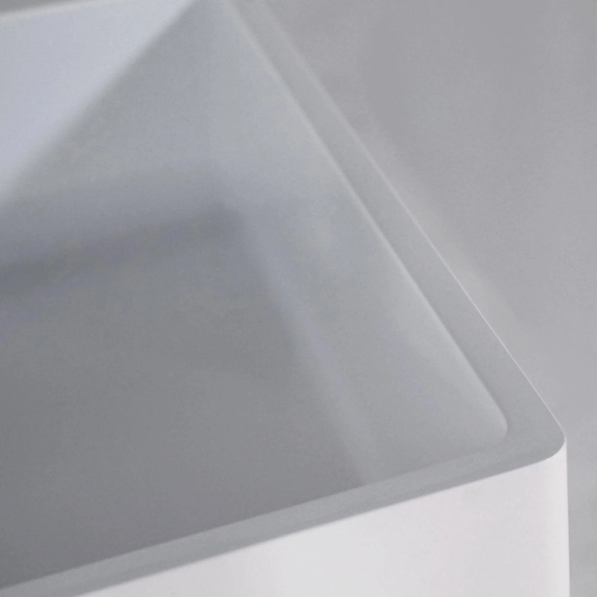 De keramiek waaruit deze opzetwastafel is vervaardigd, gekozen om haar weerstand en lange levensduur, krijgt hier een gladde en heldere afwerking. Het oppervlak vangt het licht op subtiele wijze en onthult een stralend wit dat zijn diepte behoudt in de tijd. Aangenaam om aan te raken en eenvoudig te onderhouden, voldoet deze keramische opzetwastafel aan de eisen van dagelijks gebruik en behoudt ze tegelijk een verfijnde uitstraling. Bijzondere aandacht ging naar de licht afgeronde randen en de gelijkmatige wanden, voor een optimaal gebruikscomfort.