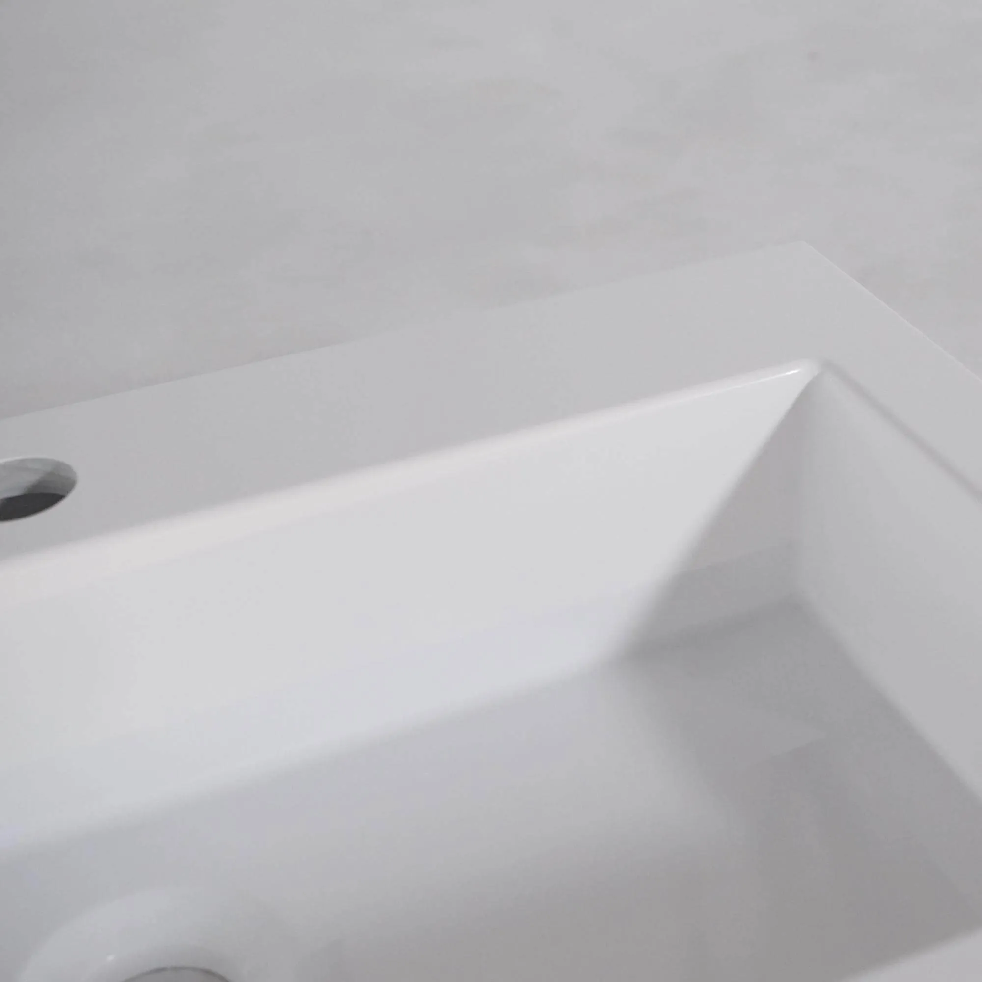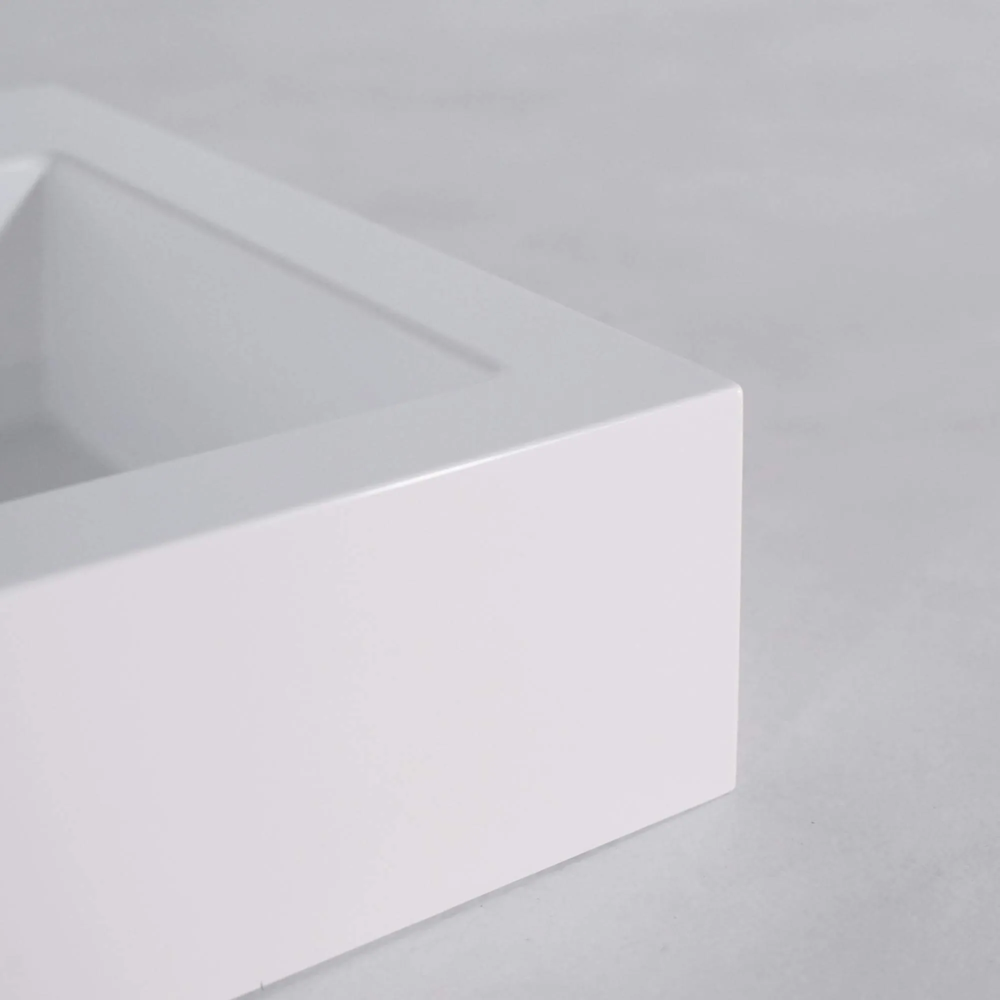 Rechthoekige opbouw waskom van keramiek, glanzend wit – Odon