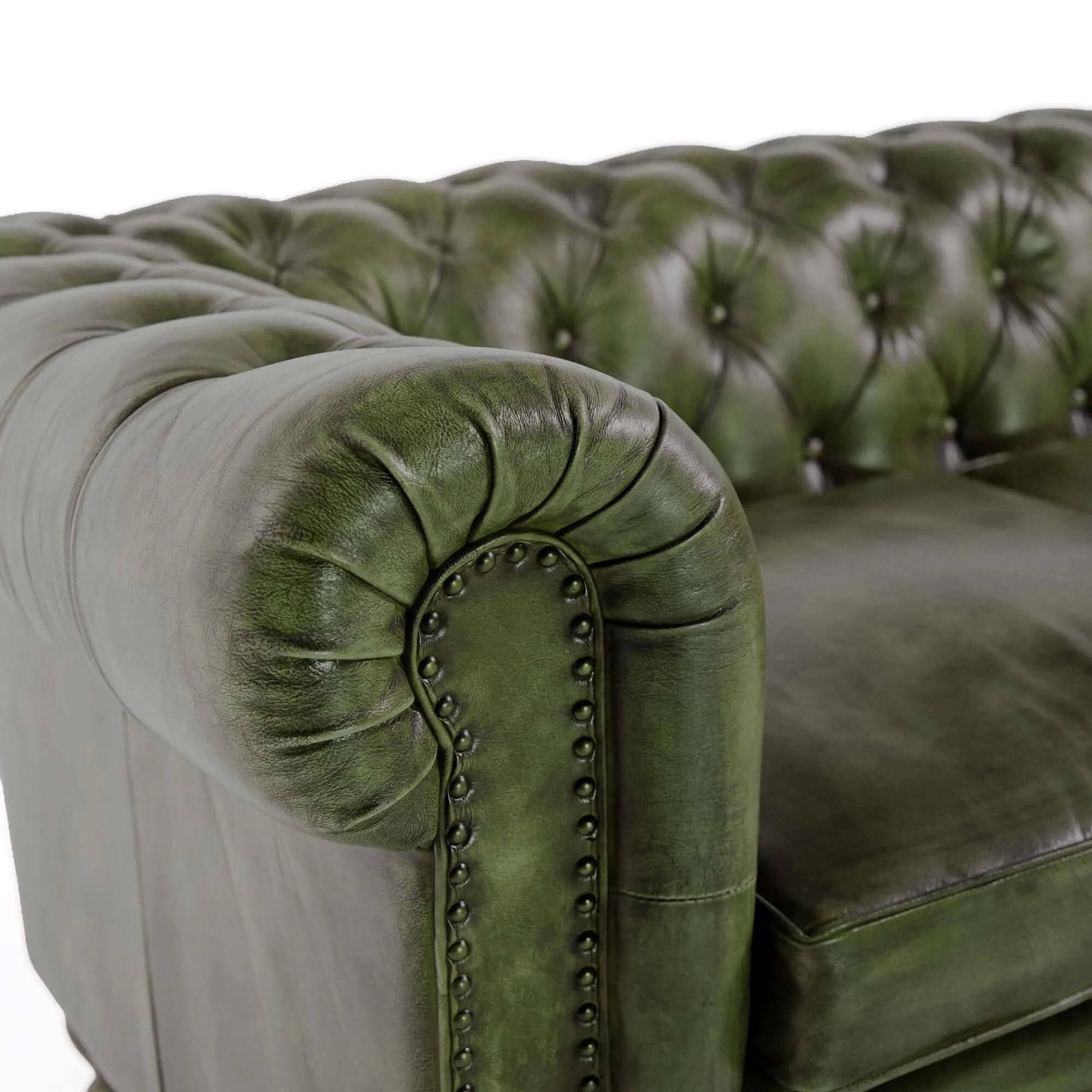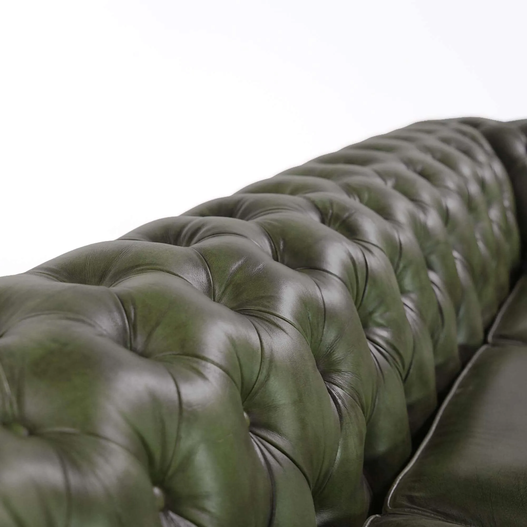 Chesterfield bank van echt groen leer 3-zits - Edward