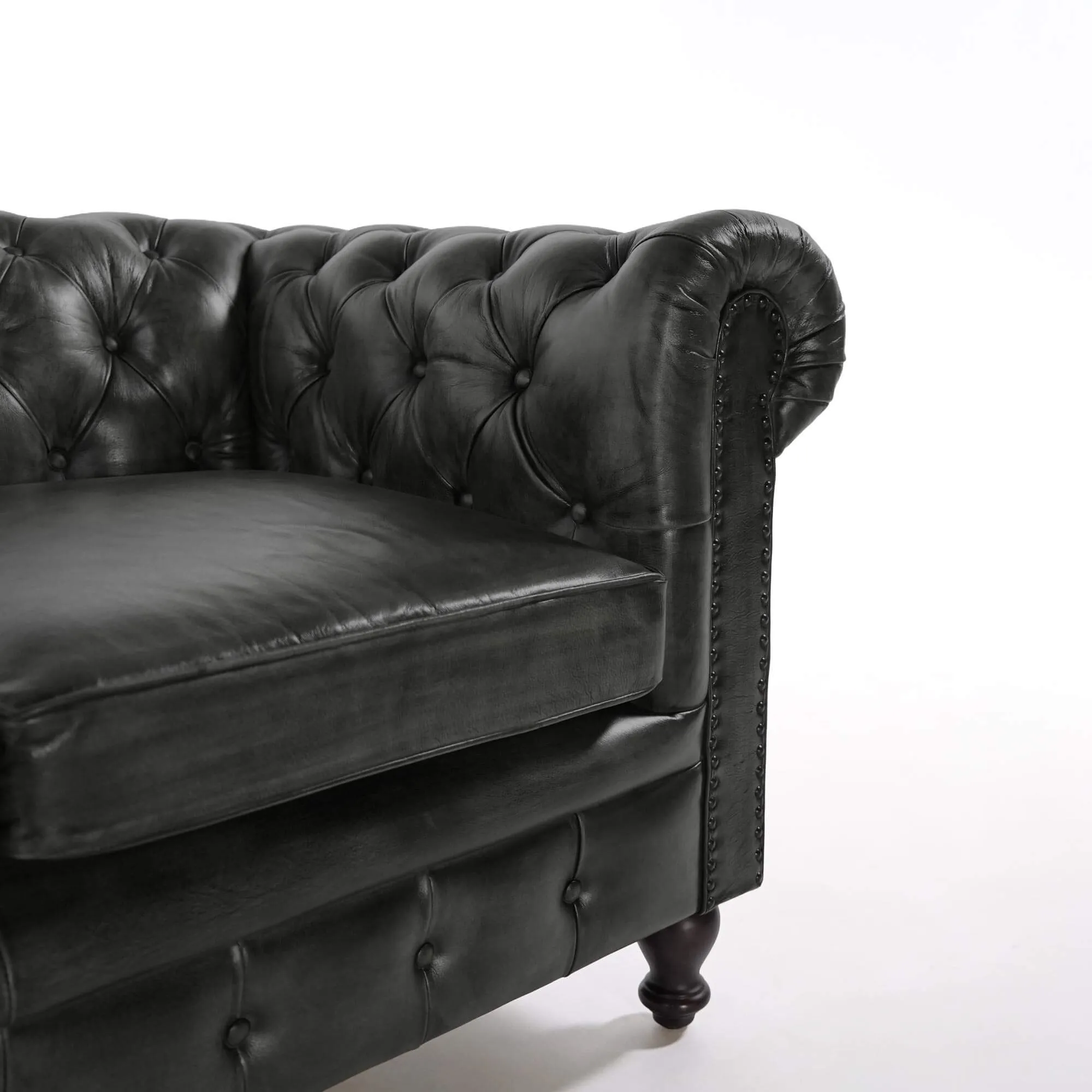 Chesterfield bank van echt zwart leer 3-zits - Edward