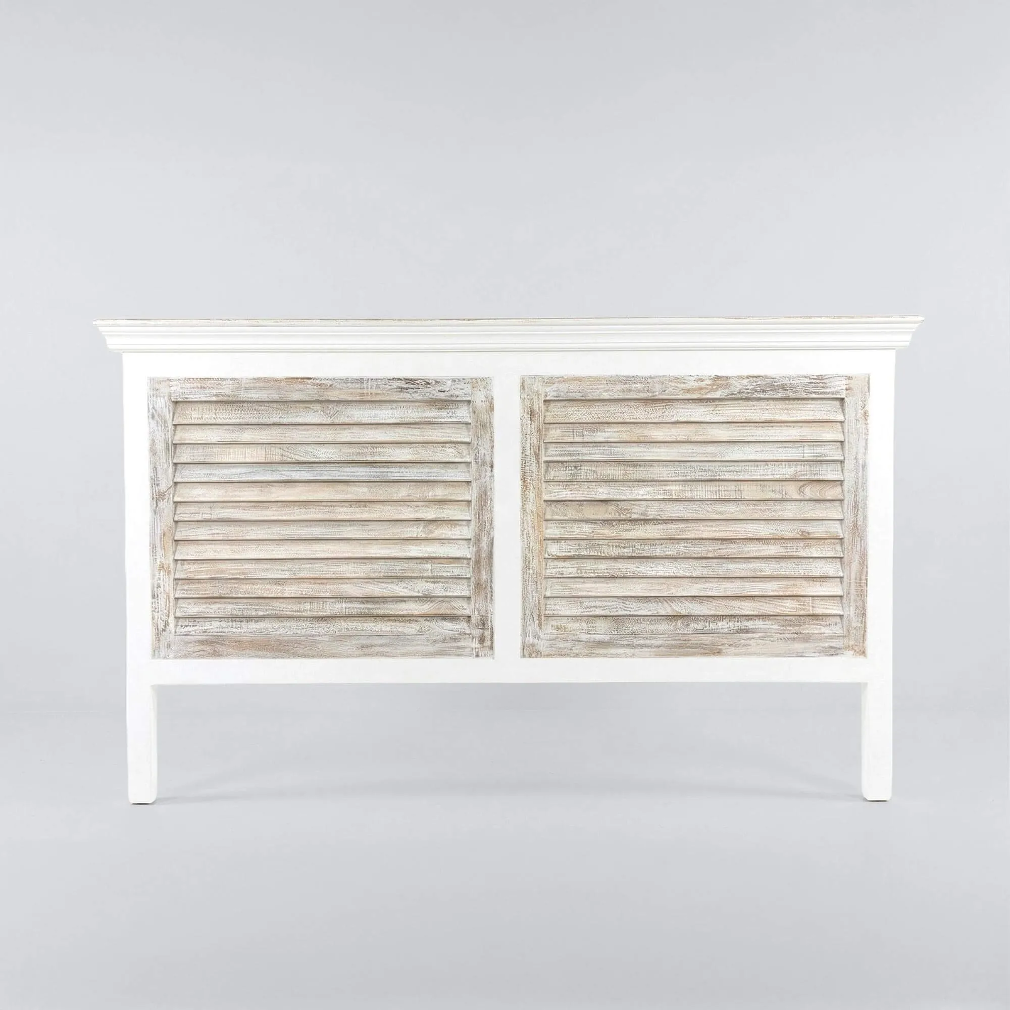 De Sea Side-collectie weerspiegelt onze wens om meubels te ontwerpen die de sereniteit oproepen van een licht interieur, waar elk element vanzelfsprekend zijn plaats vindt. Gecombineerd met de andere meubels uit de collectie draagt dit houten hoofdbord in wit met luiken bij aan een rustgevende visuele eenheid, ideaal om een harmonieuze en charmante slaapkamer samen te stellen.