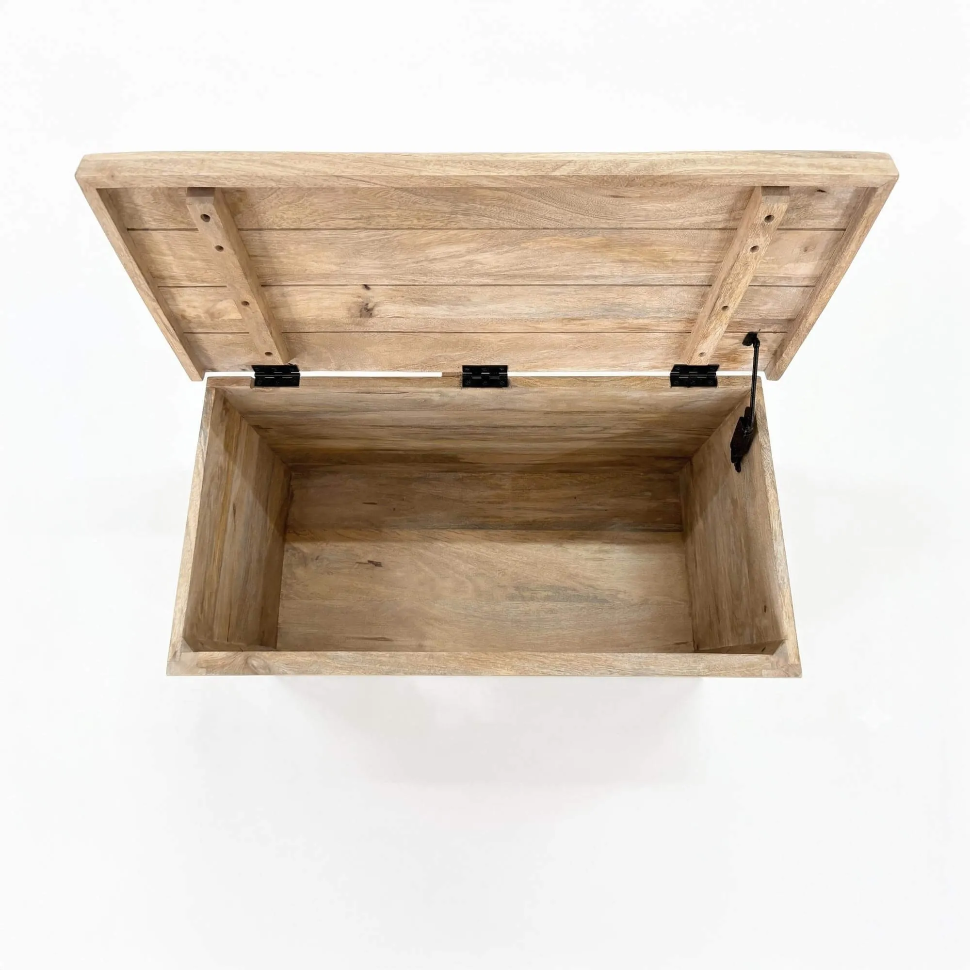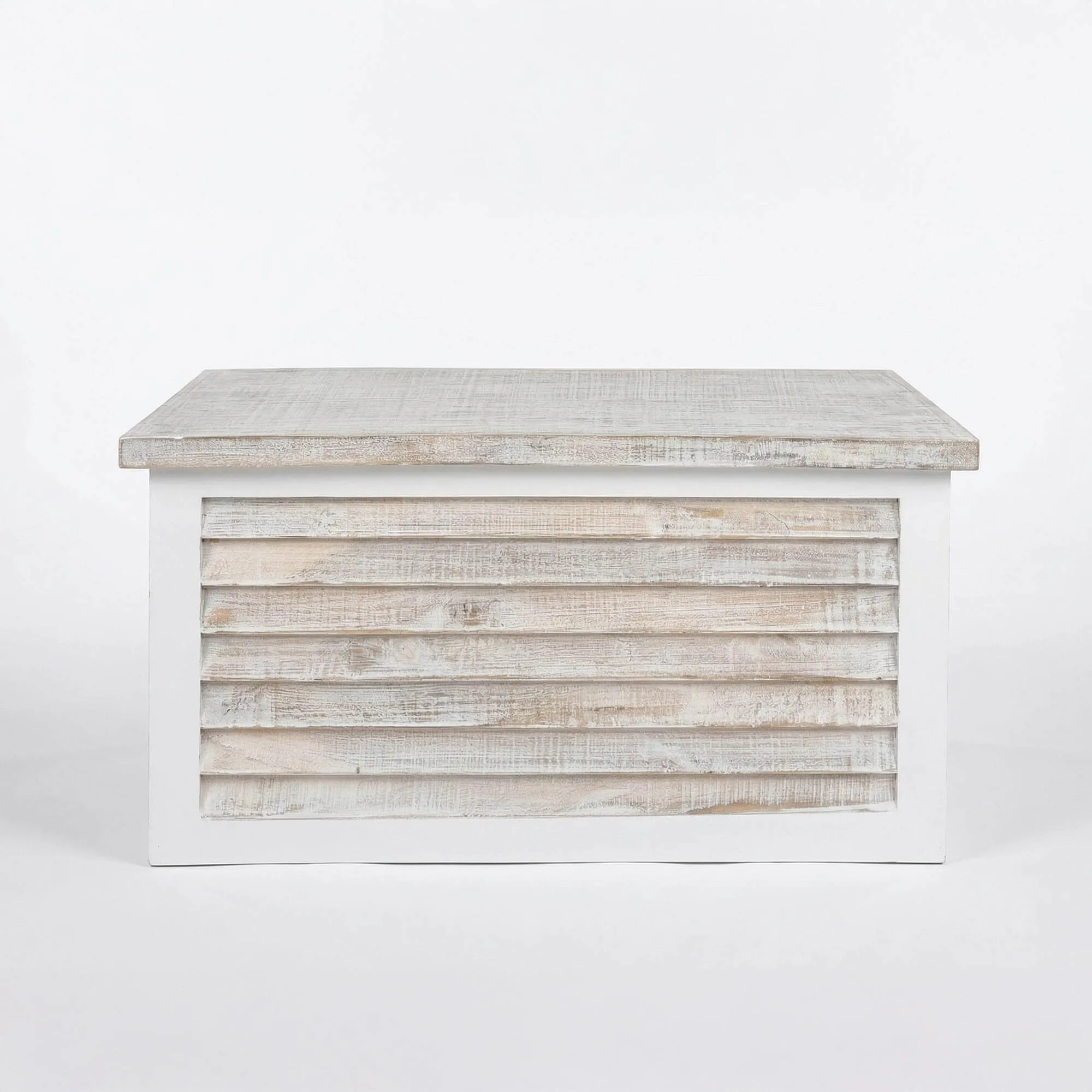 We hebben deze opbergkist in wit hout Sea side bedacht als een meubelstuk dat tegelijk praktisch en rustgevend is, geïnspireerd op de lichte interieurs die je terugvindt in huizen aan zee. Het eenvoudige silhouet brengt het vakmanschap van het mangohout mooi naar voren, terwijl de fijne houtnerf subtiel zichtbaar blijft onder de witgekalkte afwerking. Dit contrast tussen de lichte oppervlakken en de natuurlijke nuances creëert een zachte sfeer, ideaal om sereniteit te brengen in een leefruimte.
