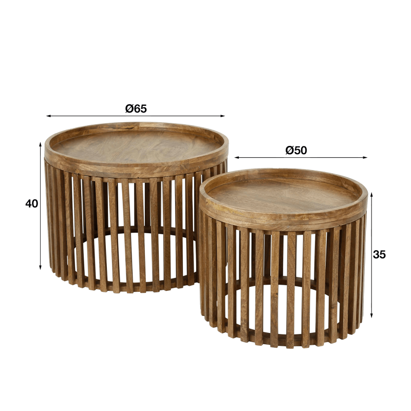 Ronde salontafels in naturel mangohout (set van 2) – Orbit