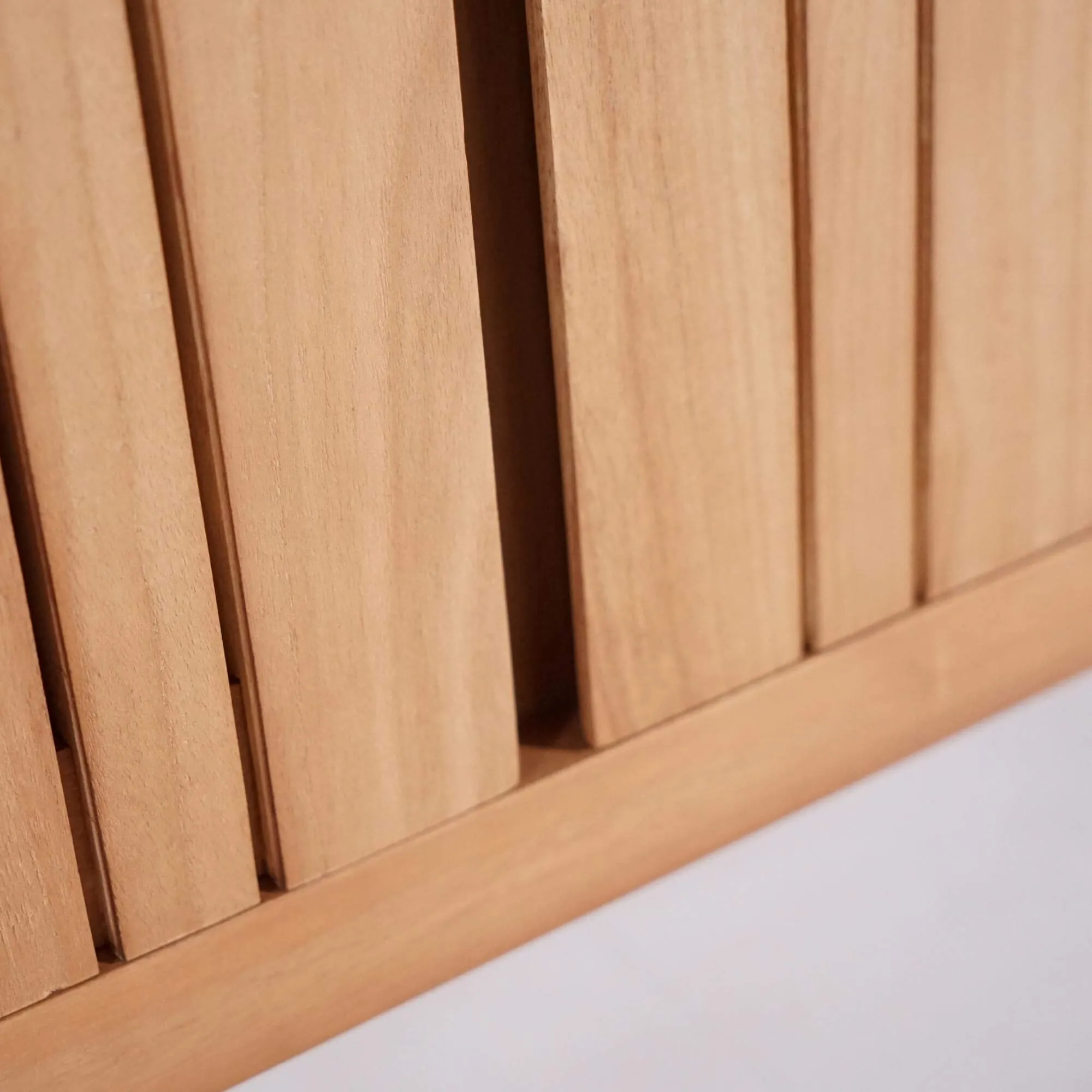 We hebben deze variant van het badkamermeubel met ingebouwde wastafel Satya ontworpen als een stuk dat zachtheid en natuurlijke eenvoud uitstraalt. Door te werken met massief mindi-hout wilden onze ontwerpers een meubel creëren dat meteen een gevoel van rust brengt, alsof het materiaal zelf uitnodigt om te vertragen. De lichte nerf en de warme houttinten geven het meubel die rustgevende aanwezigheid die zo typisch is voor Japandi-interieurs, zonder ooit overdadig decoratief te worden.