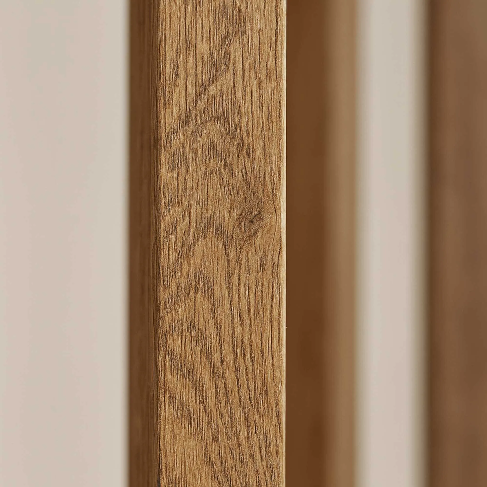 Vervaardigd uit massief mangohout, onthult de vloerlamp voor de woonkamer in massief mangohout Arken een warme houtsoort met gouden nuances en subtiel contrasterende nerven. Elke lat wordt zorgvuldig gevormd en vervolgens samengebracht tot een open silhouet dat het licht op een zachte en omhullende manier verspreidt. Het licht getextureerde oppervlak van het hout, gecombineerd met een verfijnde afwerking, getuigt van het ambachtelijke werk dat ons drijft en van de aandacht voor elk detail.