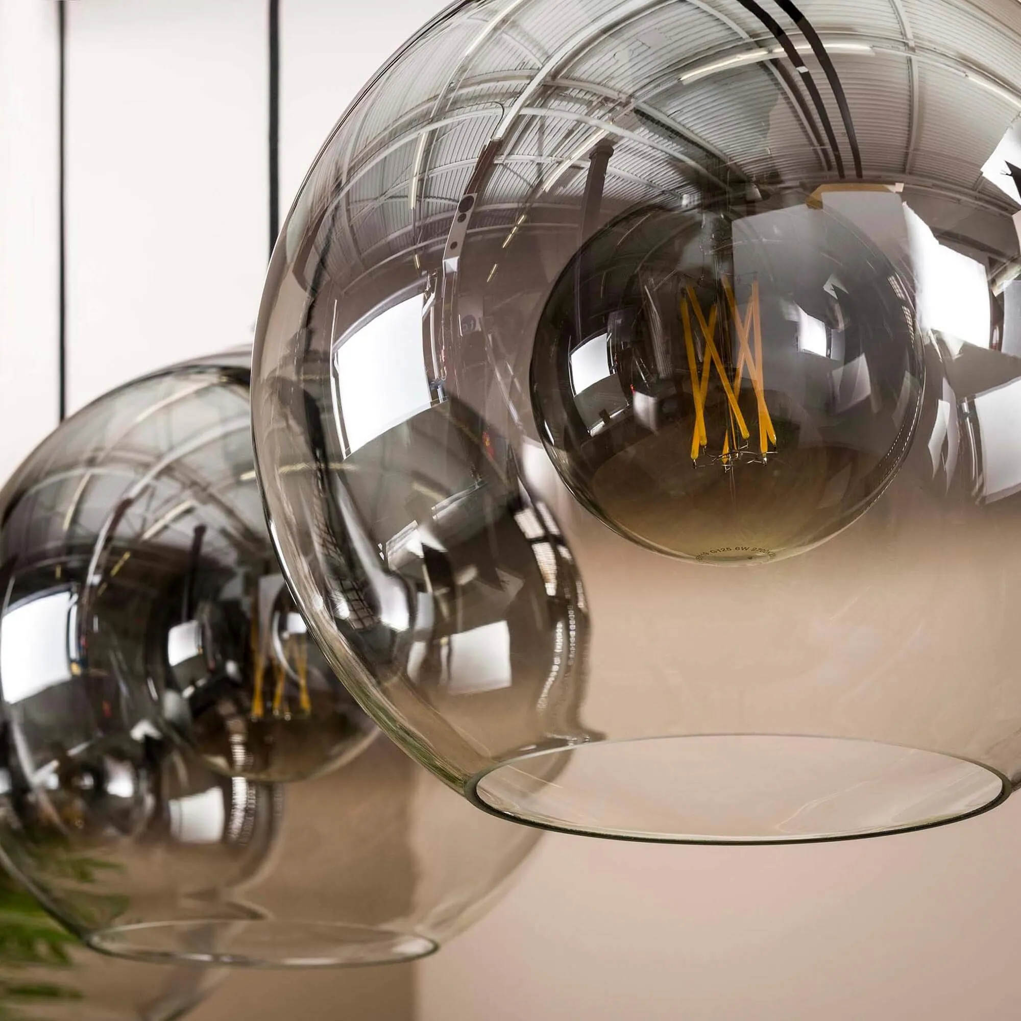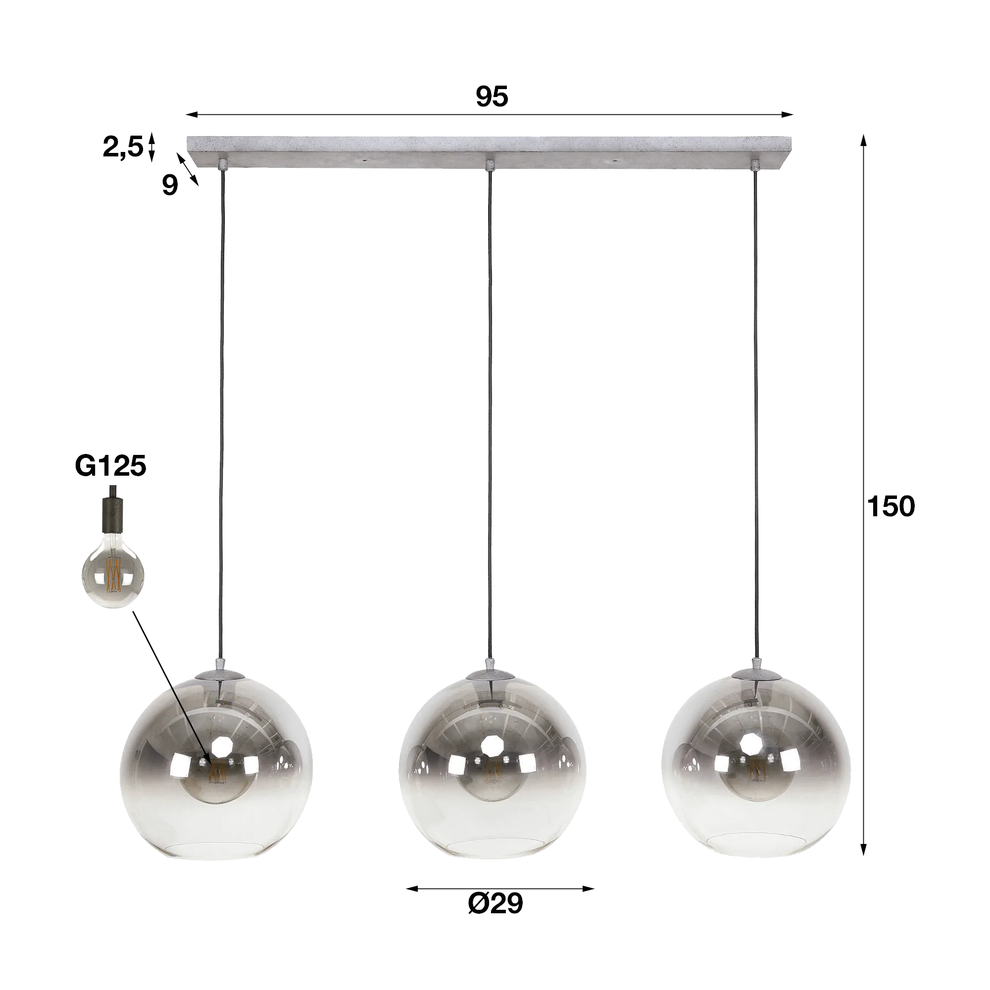 De glazen hanglamp Bubble bestaat uit drie glazen bollen met een verfijnde tint. Overdag vangt ze het omgevingslicht, en eenmaal ingeschakeld transformeert ze dit in een warme, omhullende sfeer. Het zorgvuldig gevormde glas onthult wisselende nuances afhankelijk van de kijkhoek en de lichtintensiteit, waardoor de lamp telkens anders wordt beleefd. Elke sfeer van deze glazen hanglamp heeft een diameter van ongeveer 29 cm, een royaal formaat dat het geheel harmonieus in balans houdt zonder de ruimte te verzwaren.