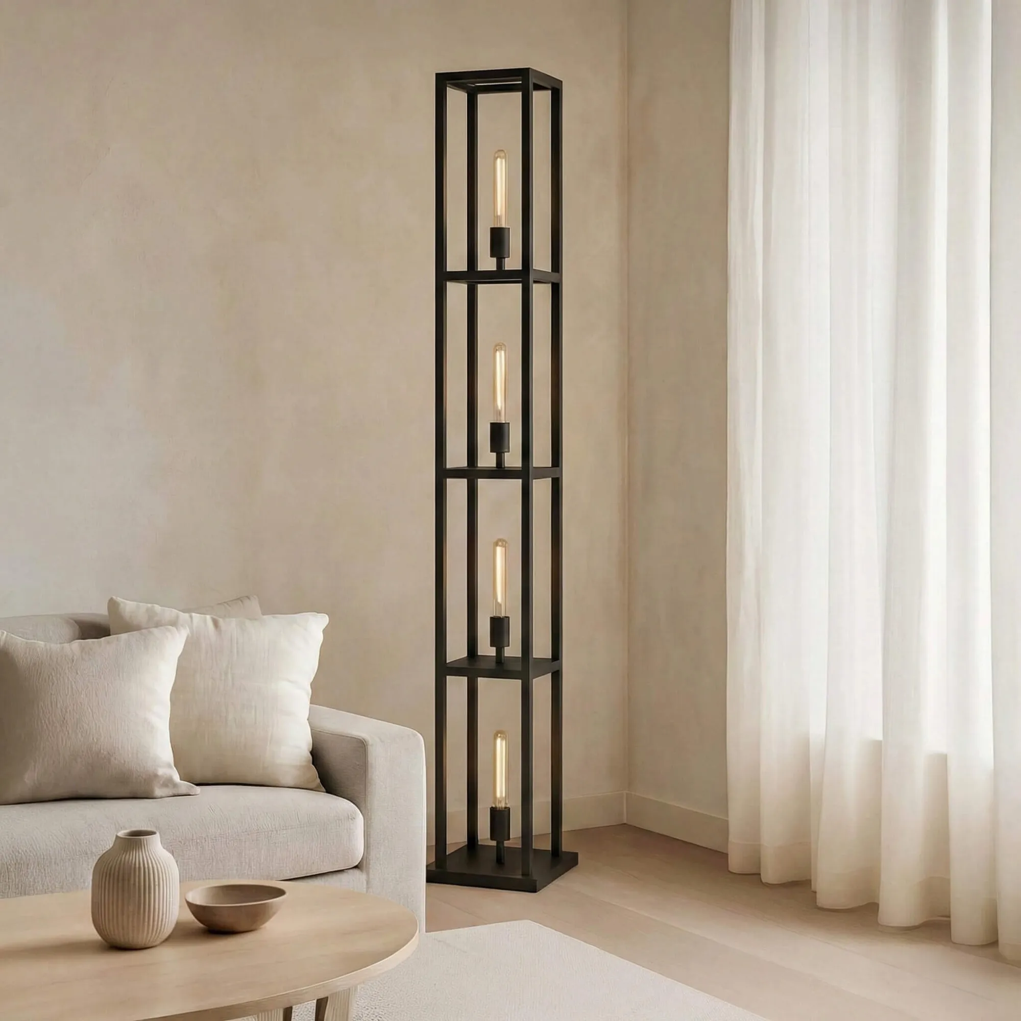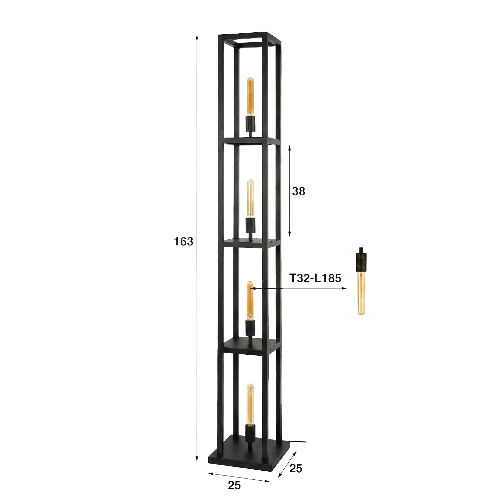 Met de staande lamp in metaal met LED-verlichting in industriële stijl Strukt zochten onze ontwerpers naar een uiterst sobere lichtexpressie, bedoeld om hedendaagse interieurs te begeleiden met een discrete maar sterk grafische aanwezigheid. De verticale structuur, 163 cm hoog, bestaat uit vier open modules die de ruimte in een rustgevend ritme verdelen. Elk niveau biedt plaats aan een T32-L185-lamp (niet inbegrepen), zorgvuldig gepositioneerd om een doorlopende lijn van zacht en warm licht te creëren.