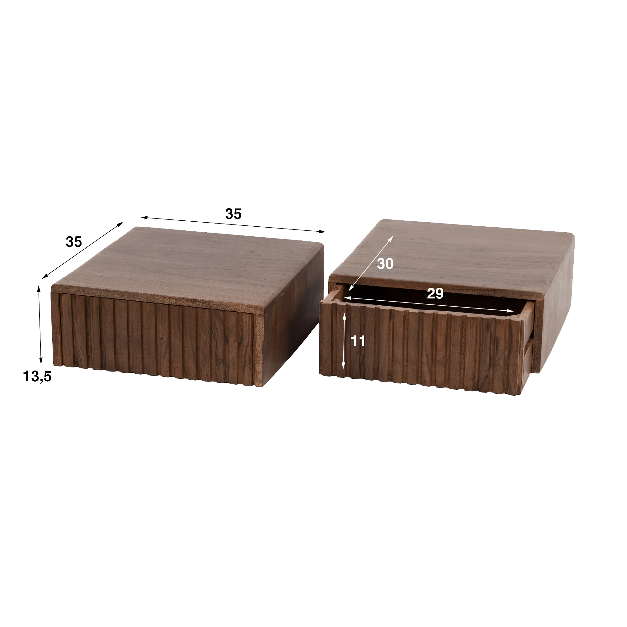Wandhangende nachttafel in massief acaciahout (set van 2) – Nest Wandhangende nachttafel in massief acaciahout (set van 2) – Nest 35 x 35 x 13,5 cm
