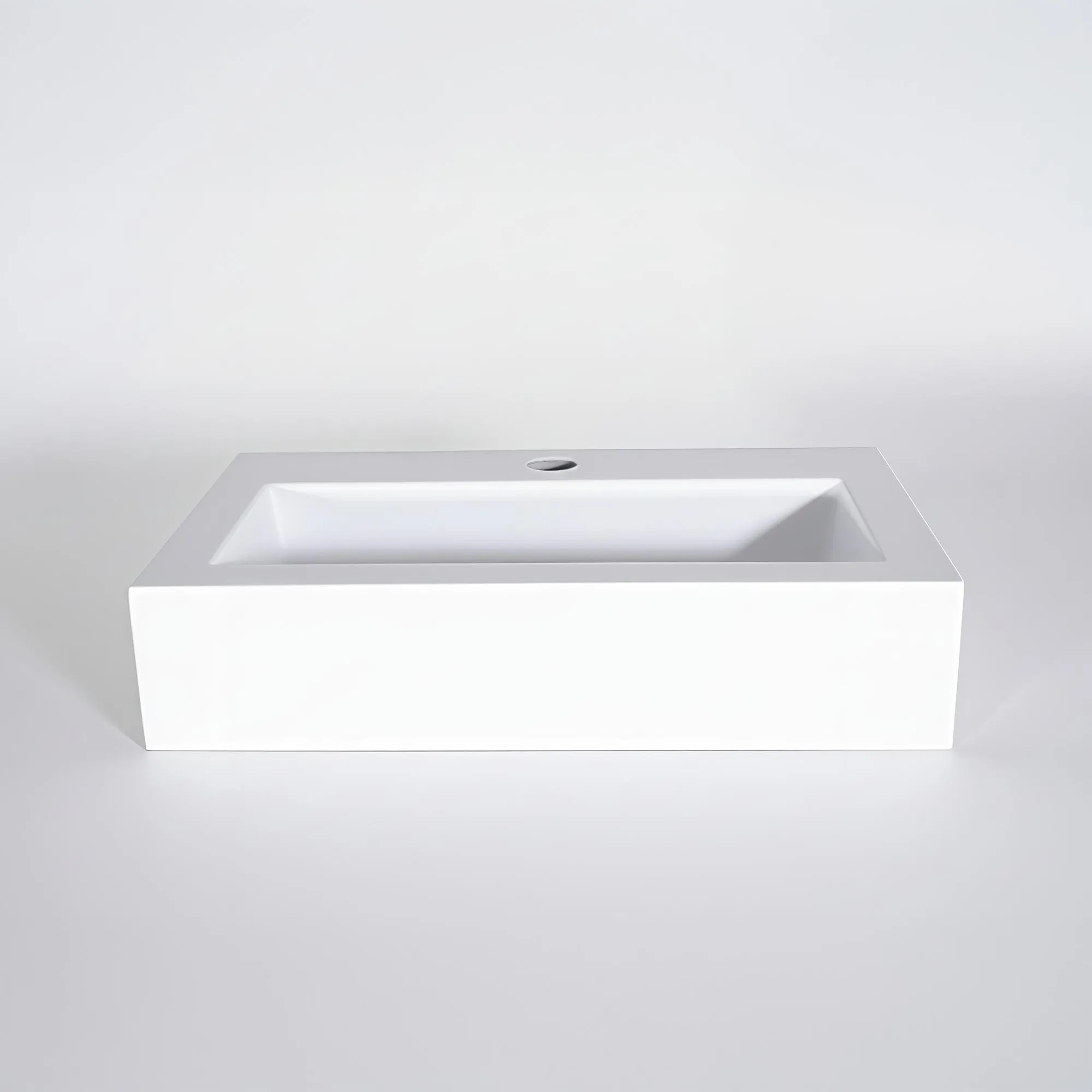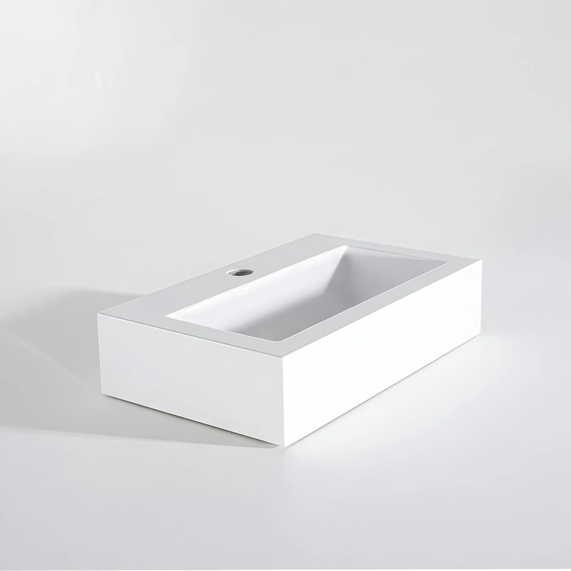 De keramiek die we selecteerden voor deze rechthoekige opzetwaskom onderscheidt zich door haar hoogwaardige afwerking en haar subtiele matwitte kleur, tegelijk helder en rustgevend. Dit zachte oppervlak vangt het licht zonder overdreven reflecties en creëert zo een kalme, hedendaagse sfeer. Bij aanraking voelt het materiaal compact en perfect glad aan, het resultaat van een vakmanschap dat we in elke ontwerpfase uitdragen.