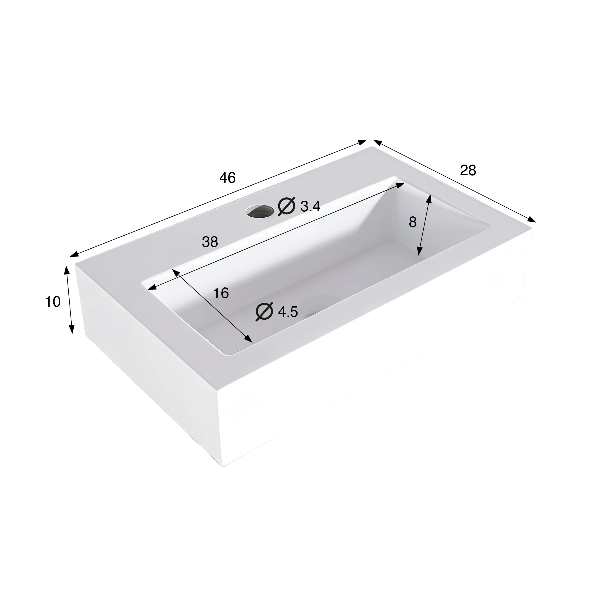 Rechthoekige opbouw waskom van keramiek, mat wit – Odon Rechthoekige opbouw waskom van keramiek, mat wit – Odon 460 x 280 x 100 cm
