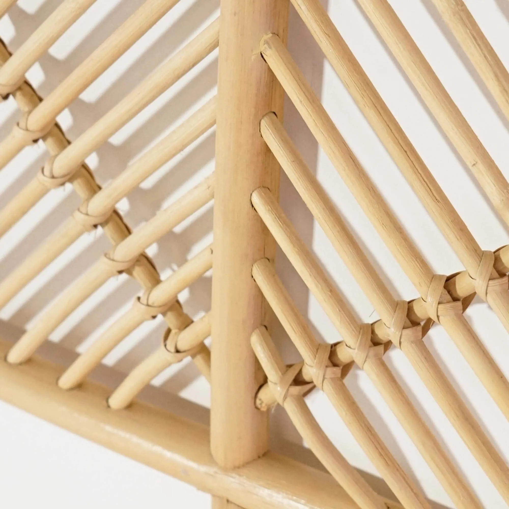 We hebben het hoofdbord van 160 cm in riet (rotan) Weava ontworpen als een stuk dat meteen een zachte en uitnodigende sfeer in de slaapkamer creëert. Het ontwerp is gebaseerd op minutieus rotanvakmanschap, volledig met de hand vervaardigd, waarbij elke streng zorgvuldig wordt gebogen, aangepast en nauwkeurig samengevoegd. Het diagonale geometrische patroon zorgt voor een subtiel visueel ritme dat de ruimte structureert zonder het licht tegen te houden.